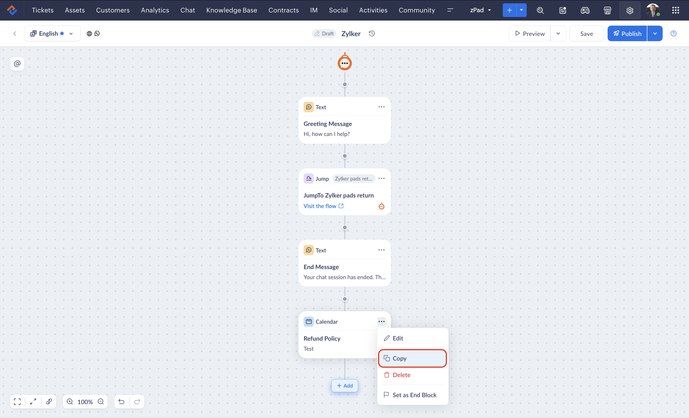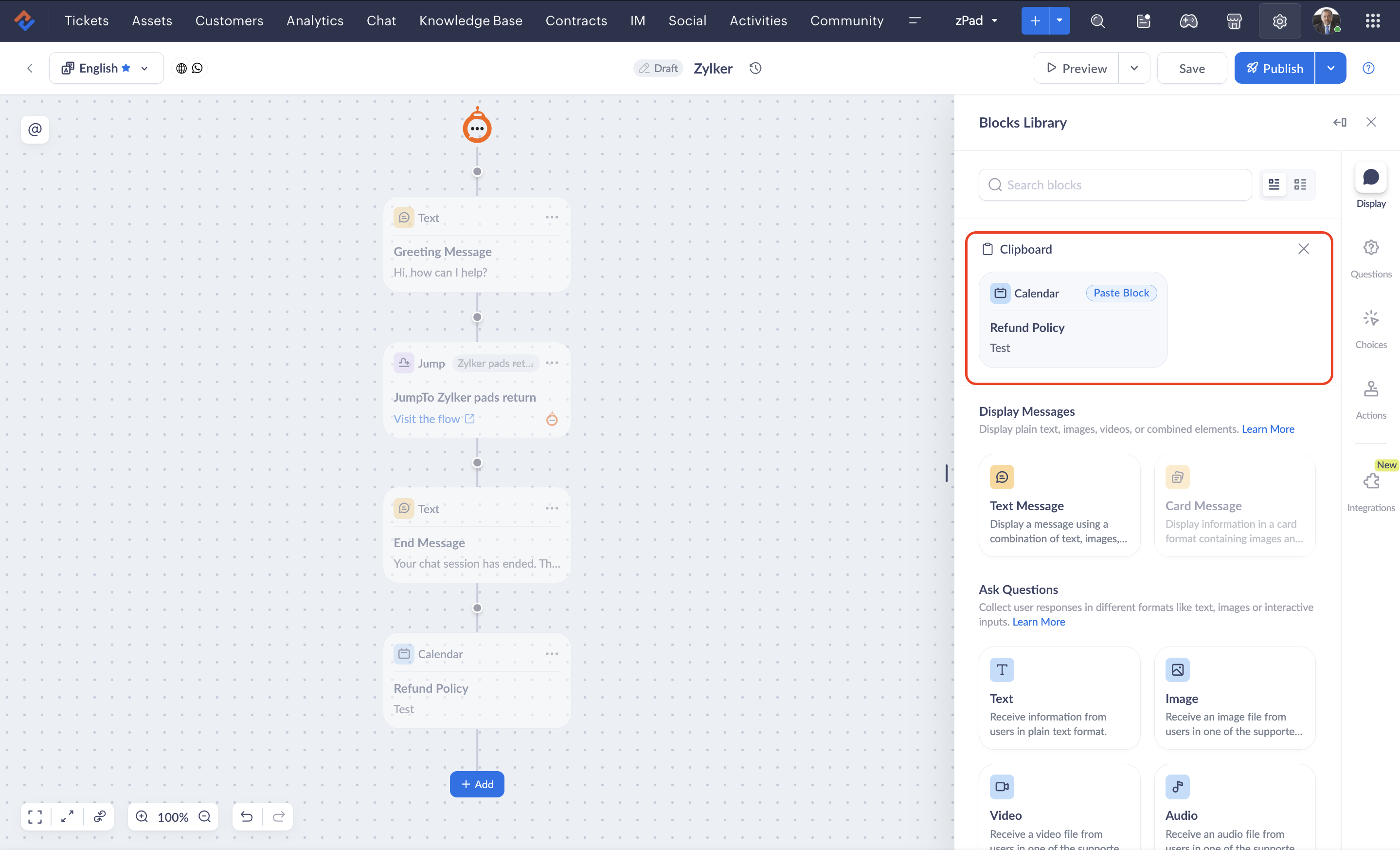 If you need to reuse a block that you previously created, you can copy that block and add it to your flow as it is or edit it according to the requirement.
