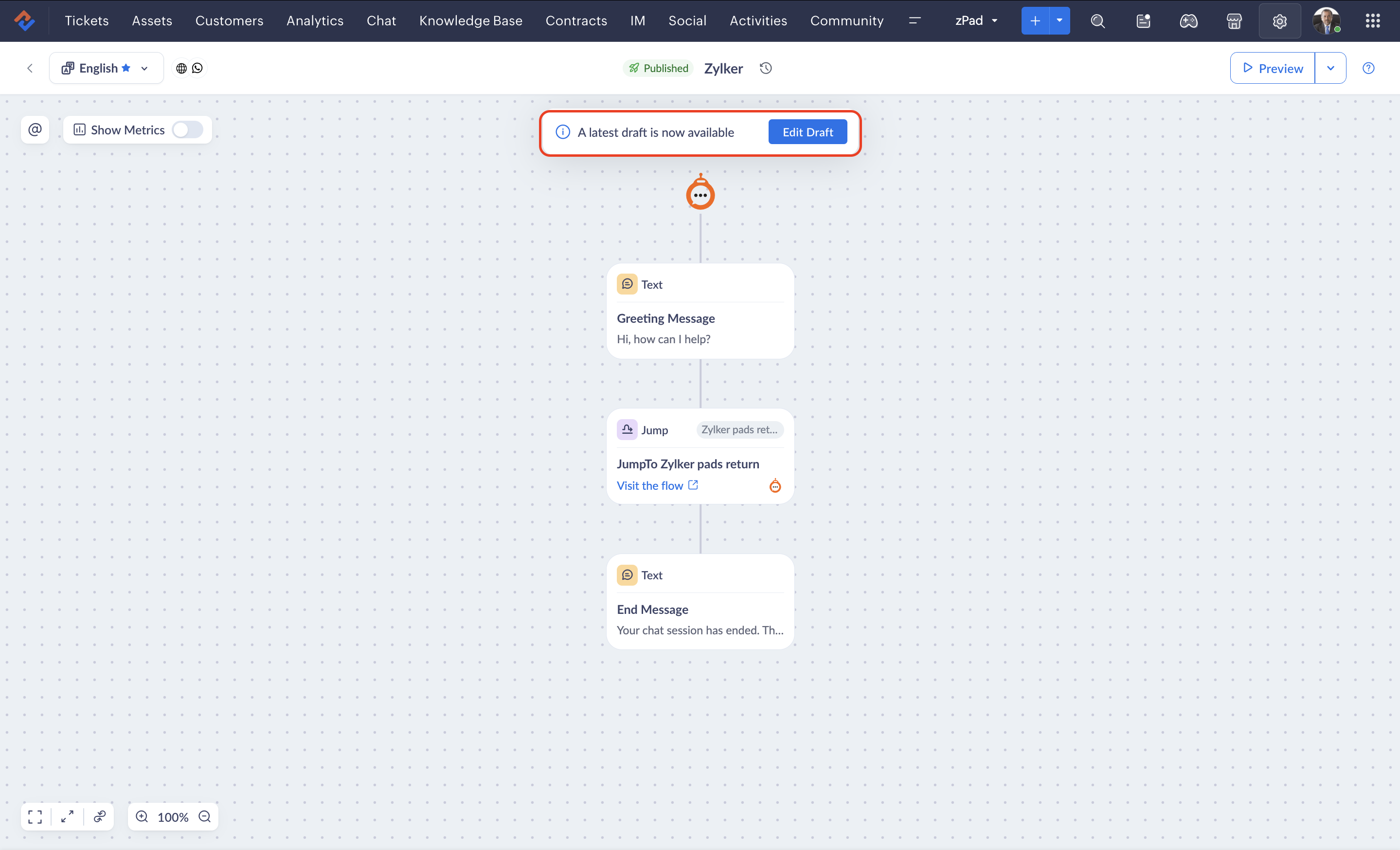 - If you edit a block while an end user is engaged in a live session with the bot, the previous version of the flow will be rendered until they restart the conversation.