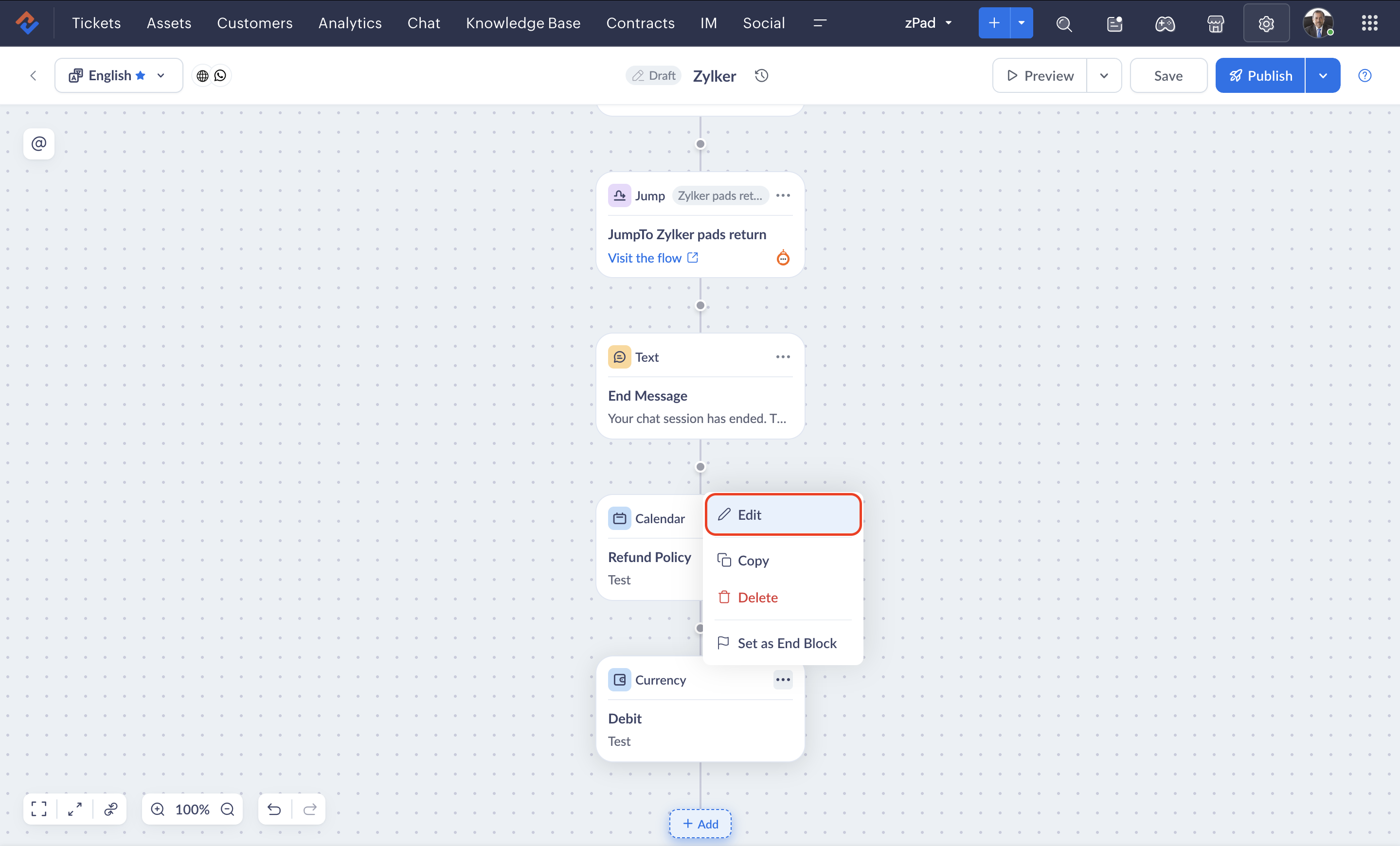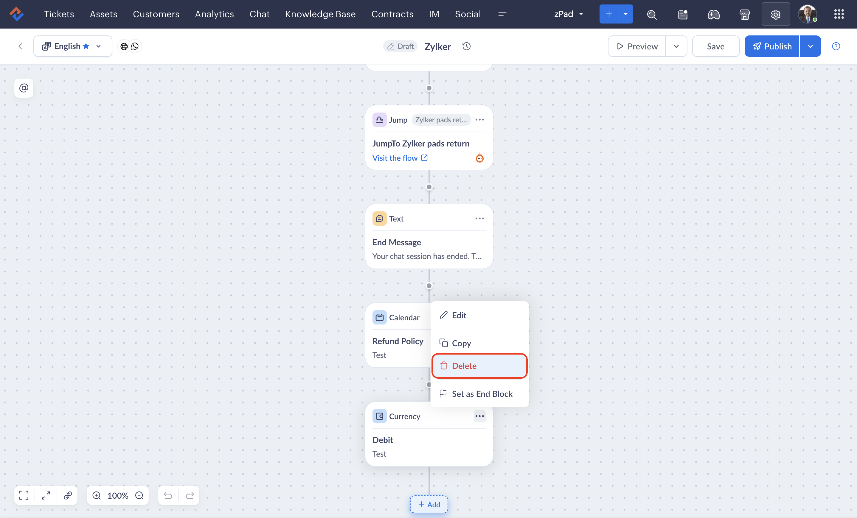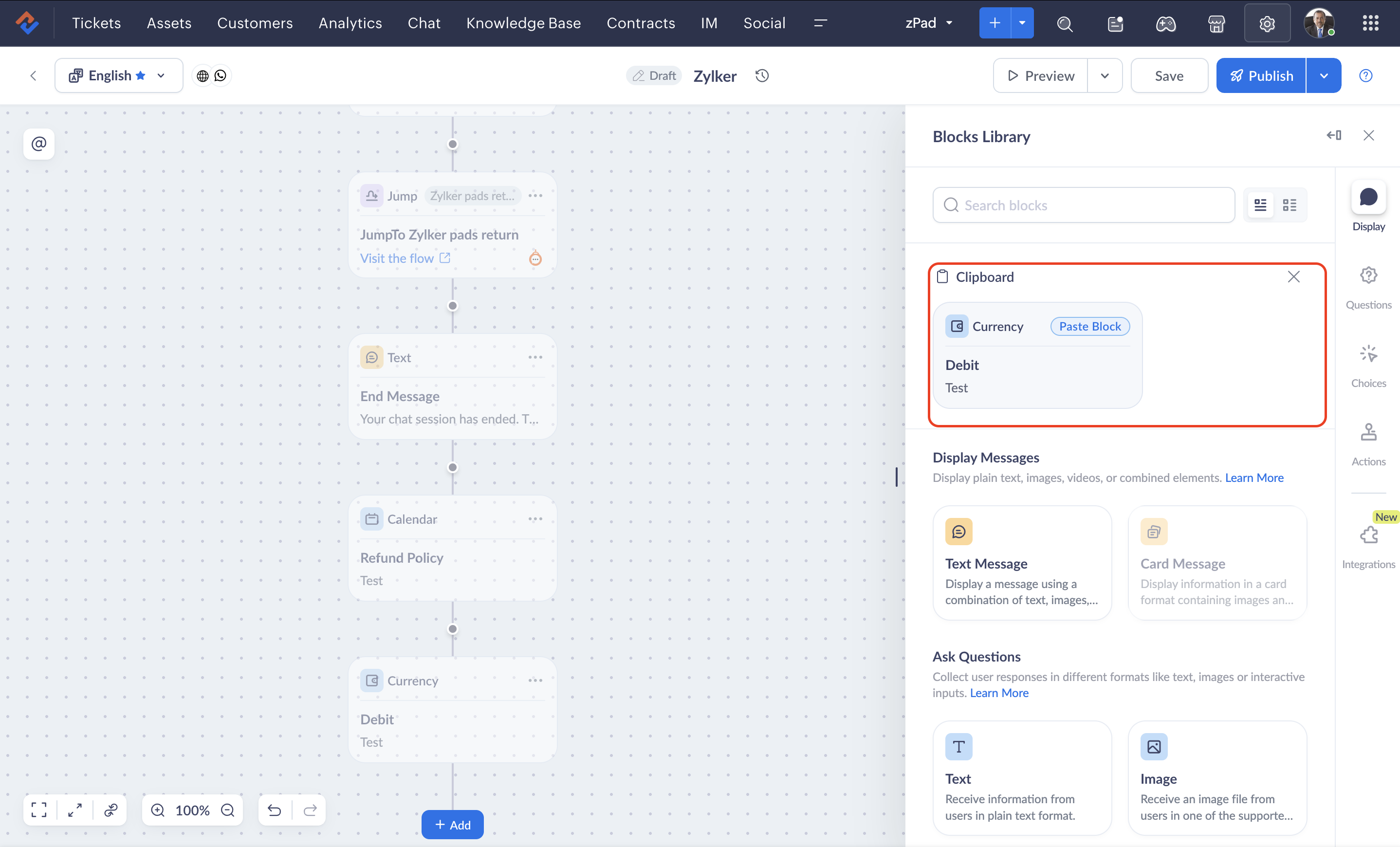 - If you delete a currency block while an end user is engaged in a live session with the bot, the previous version of the flow will be rendered until they restart the conversation.