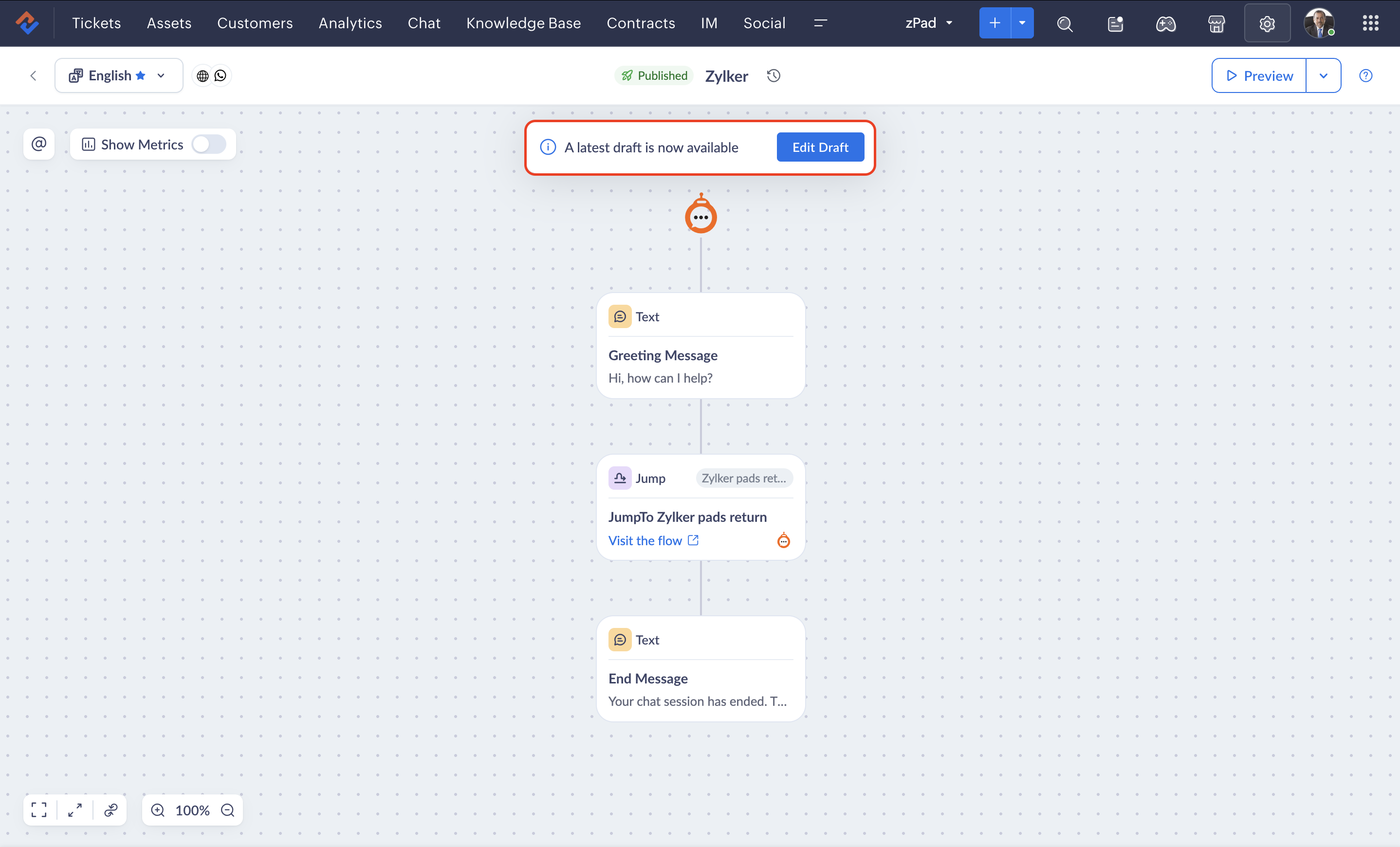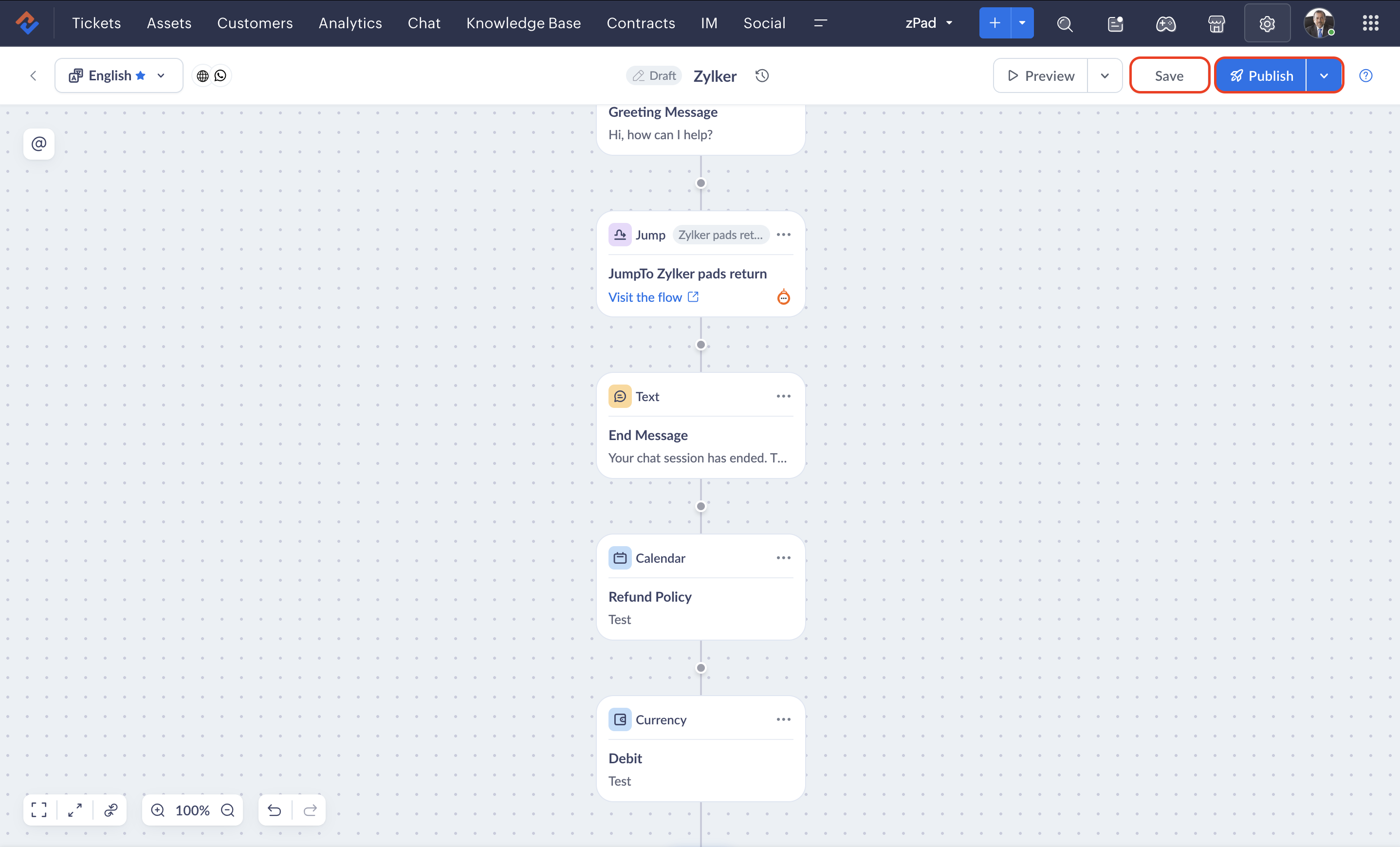 - After making changes, you will need to publish the flow for those changes to be reflected in an end user's session.