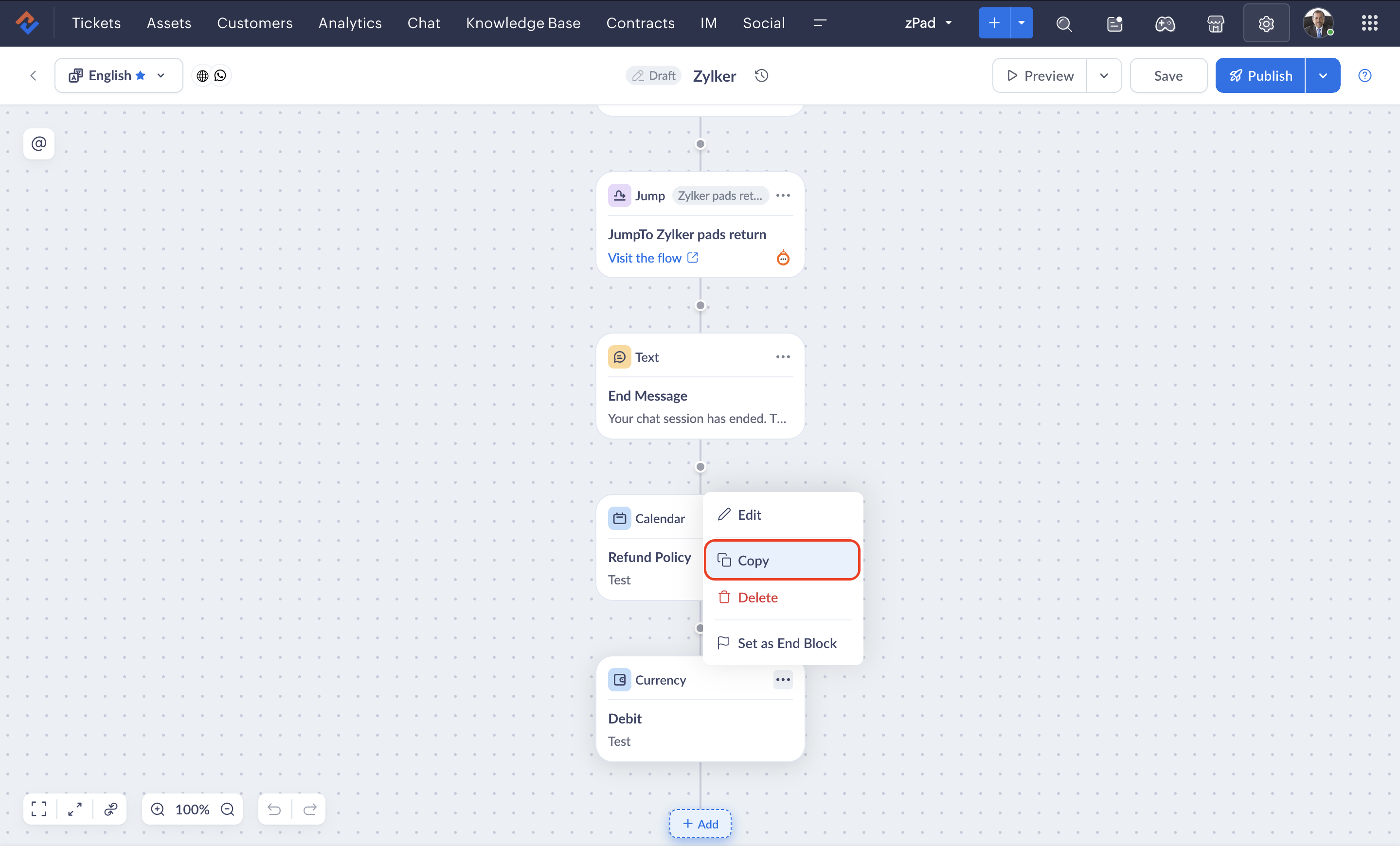 If you need to reuse a block that you previously created, you can copy that block and add it to your flow as it is or edit it according to the requirement.