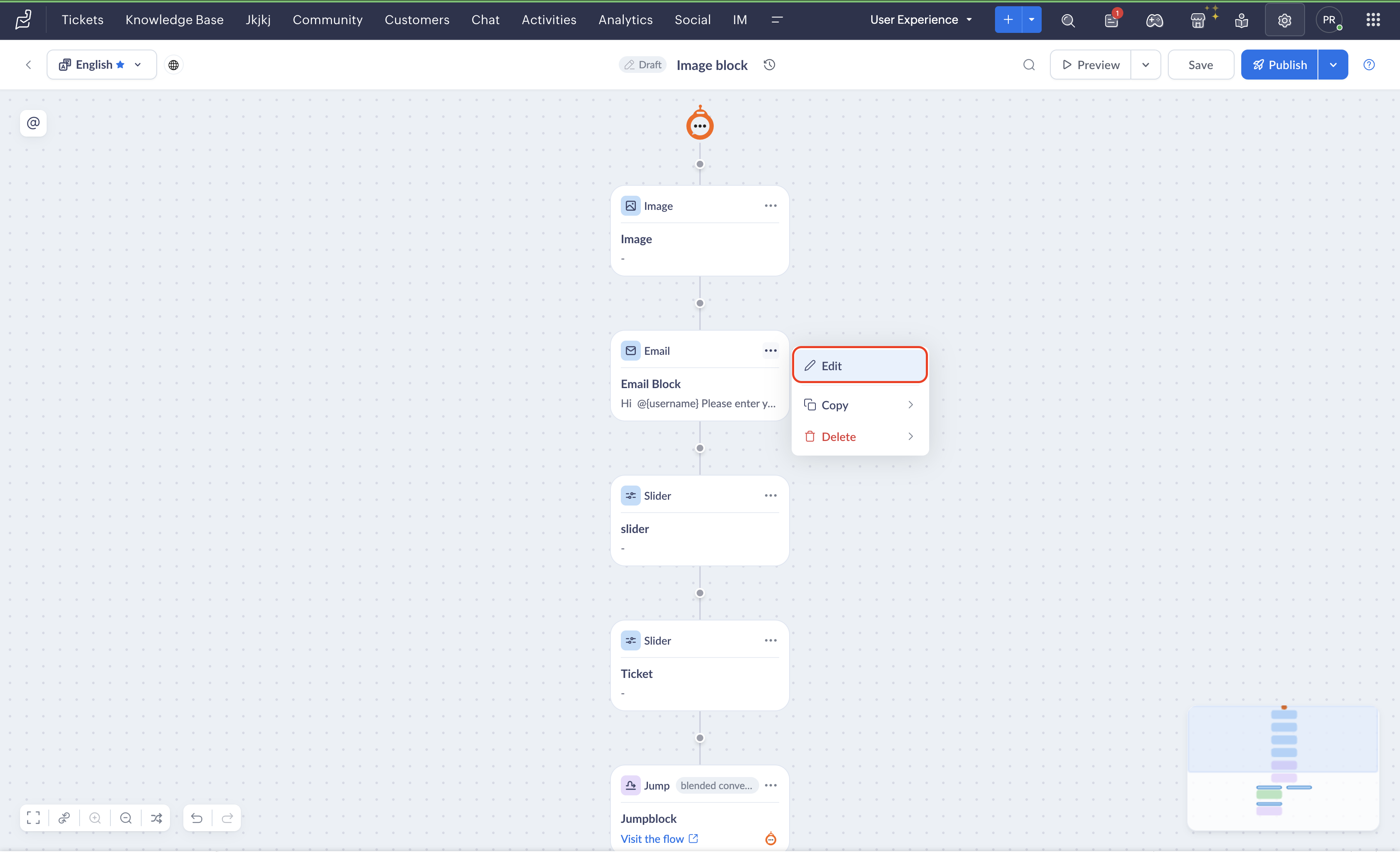 - If you edit a block while an end user is engaged in a live session with the bot, the previous version of the flow will be rendered until they restart the conversation.