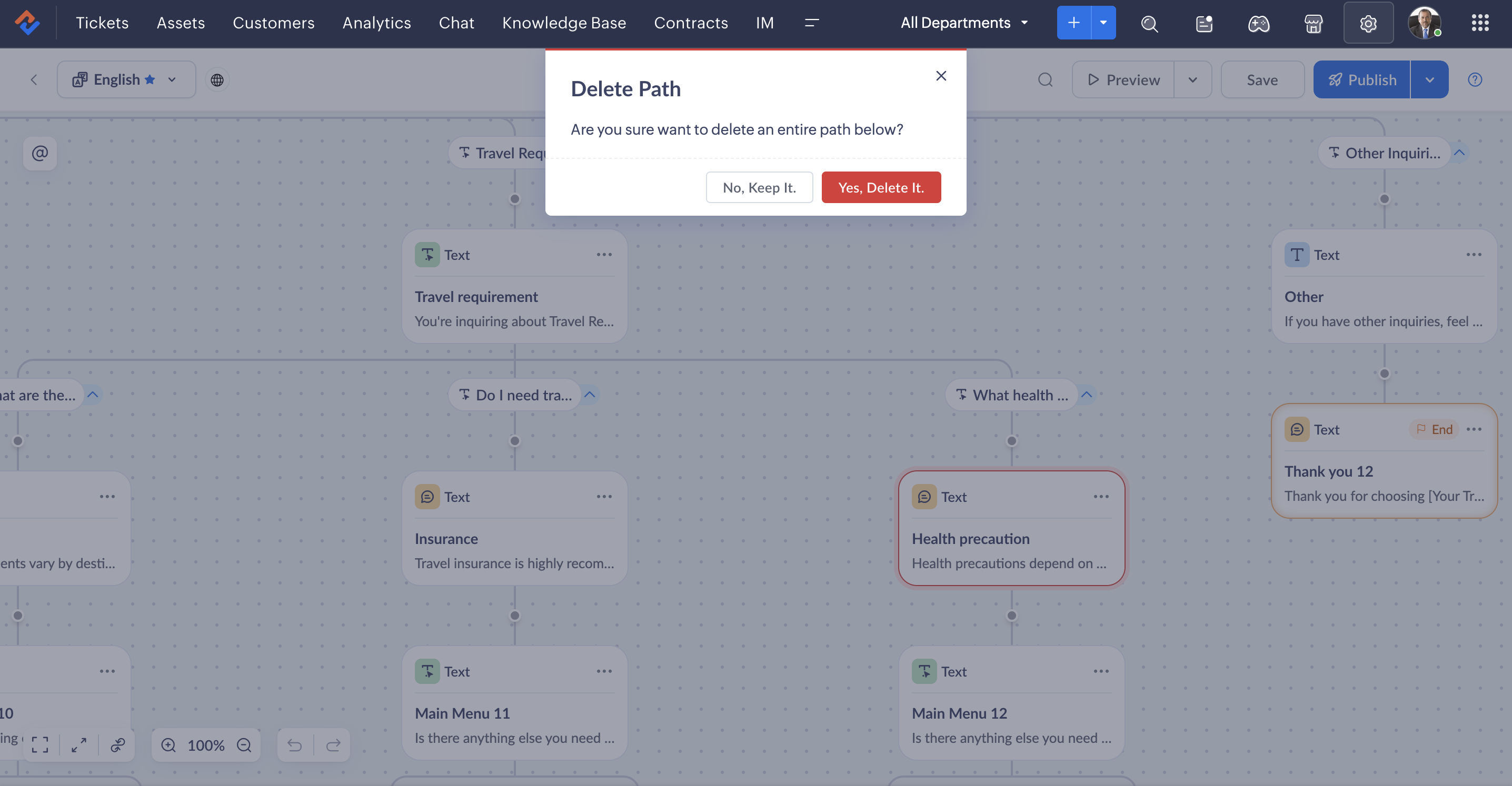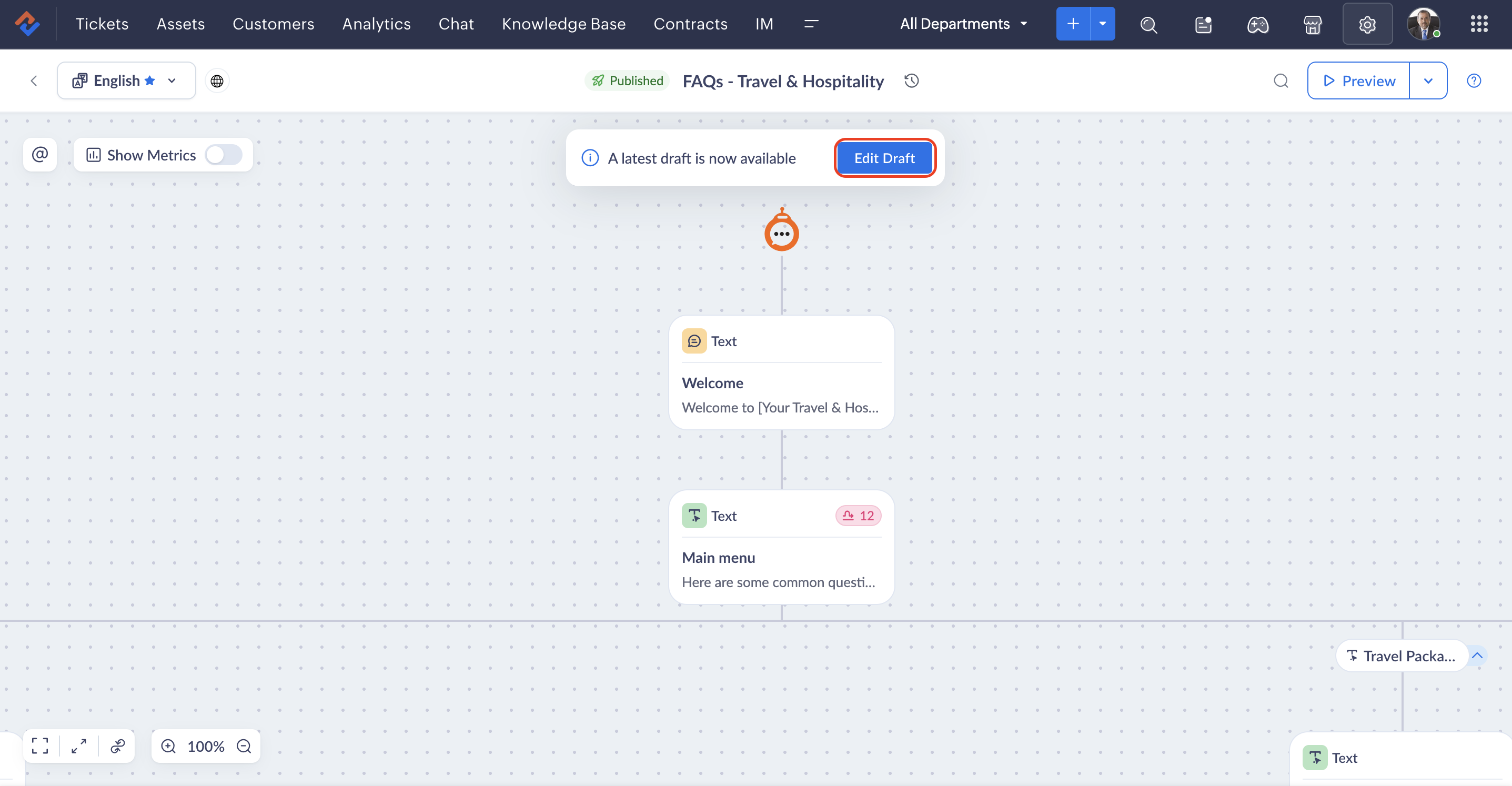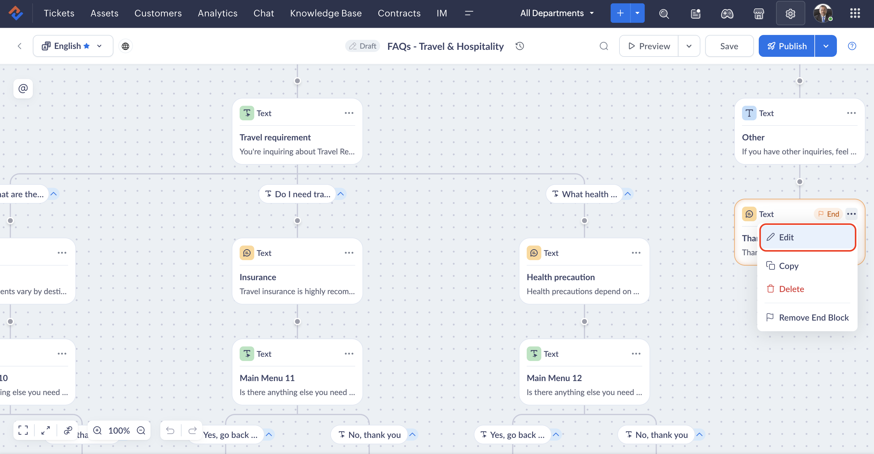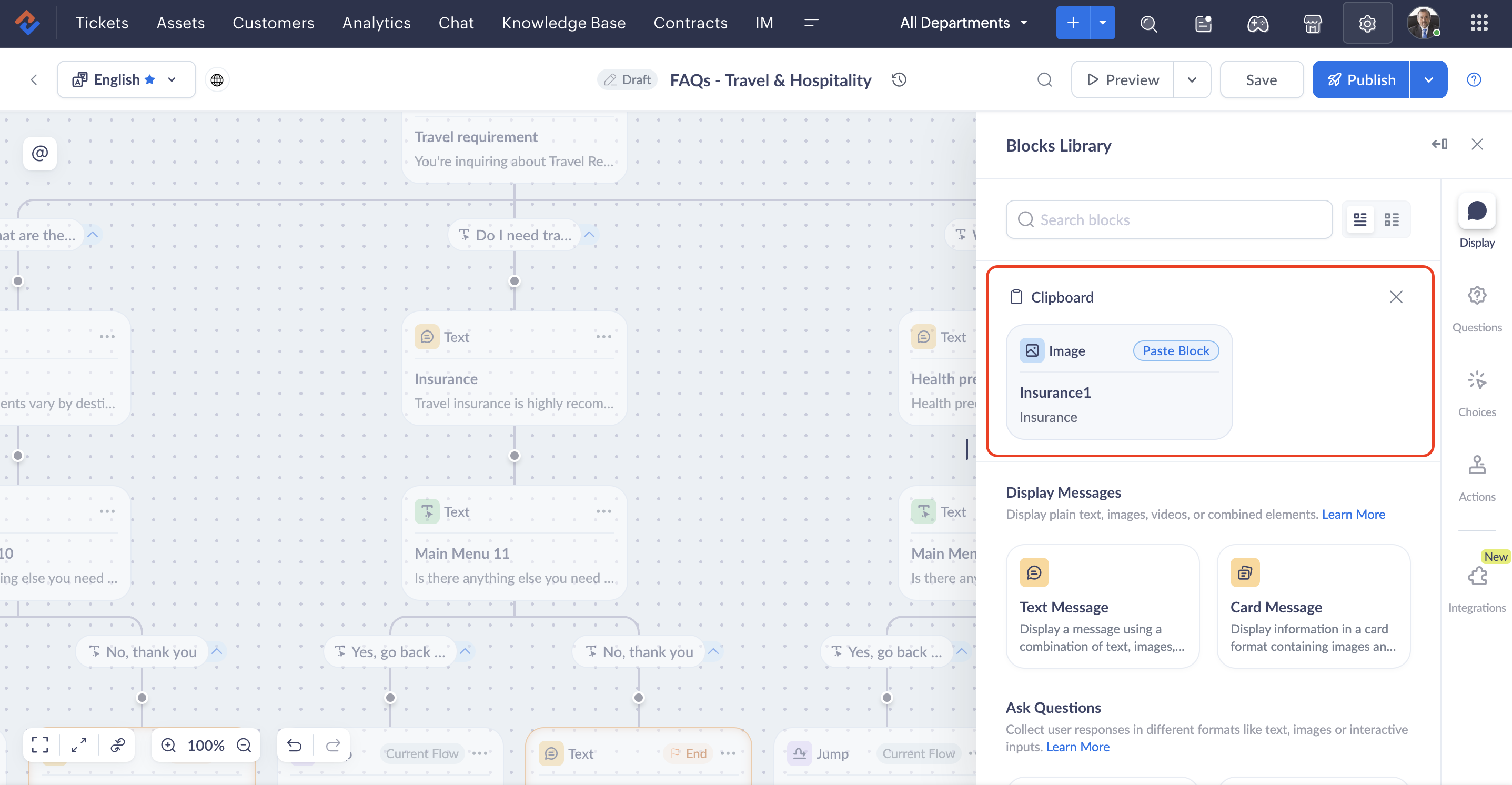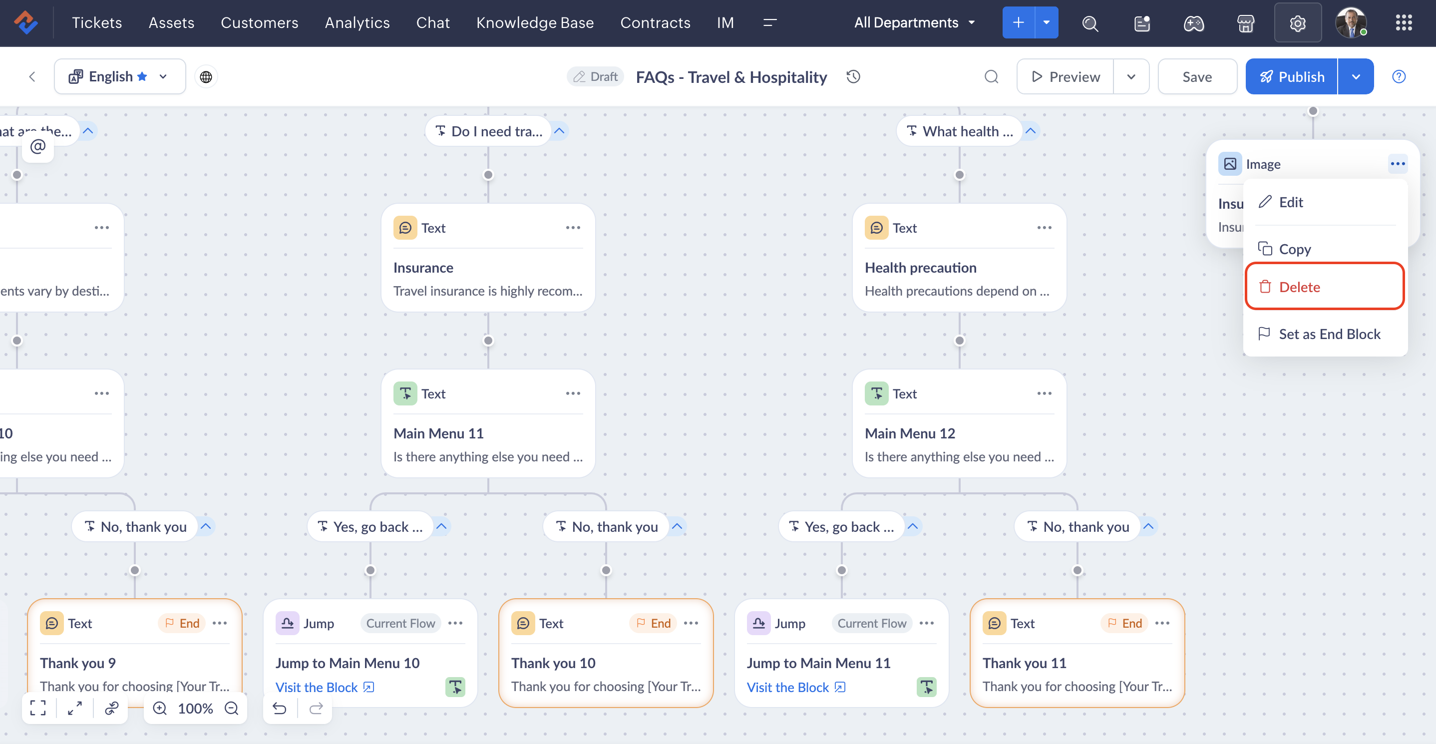 - If you delete a block while an end user is engaged in a live session with the bot, the previous version of the flow will be rendered until they restart the conversation.