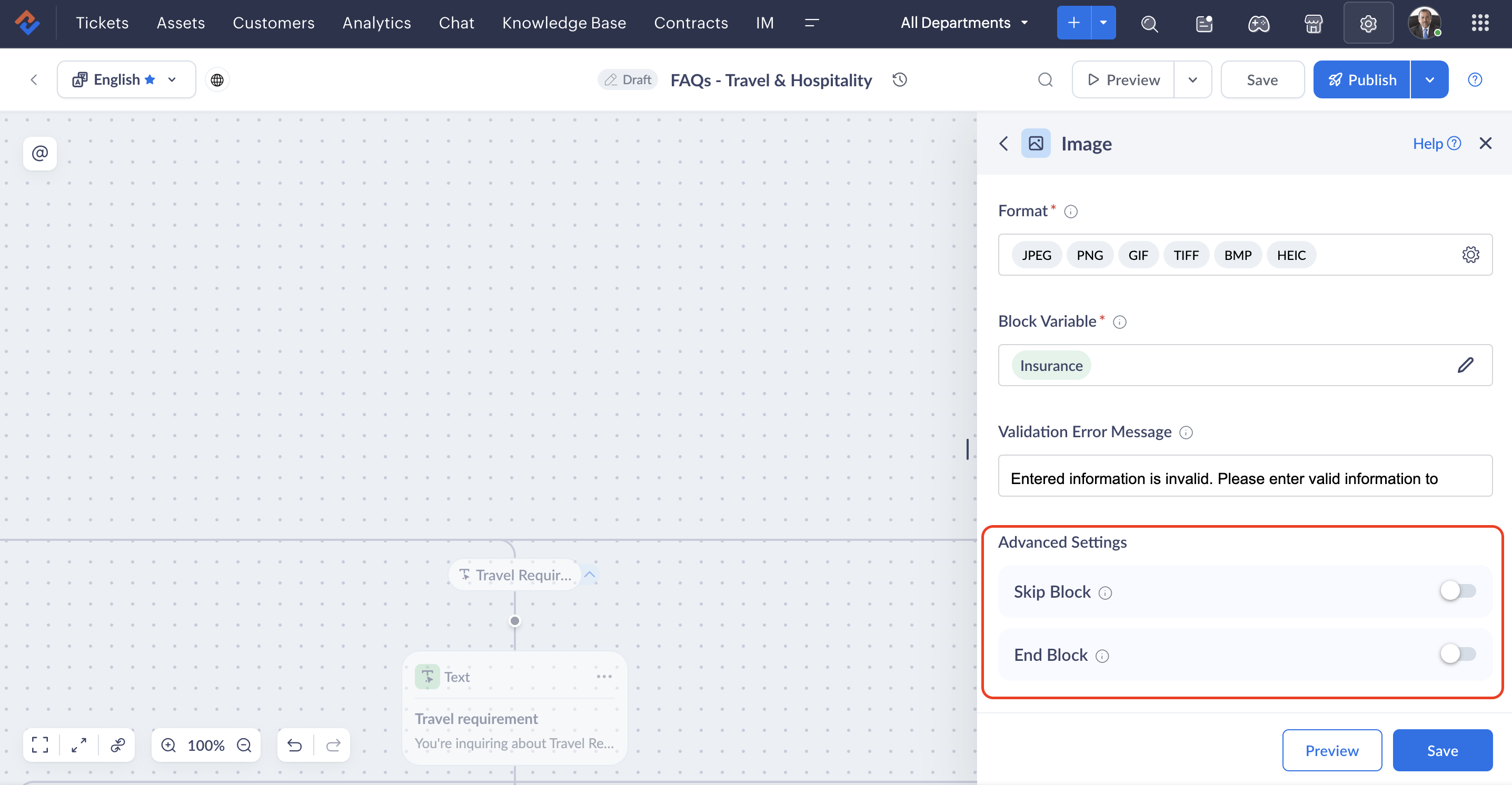 - If this block is not mandatory for your user to answer, toggle the option to Skip Block on.