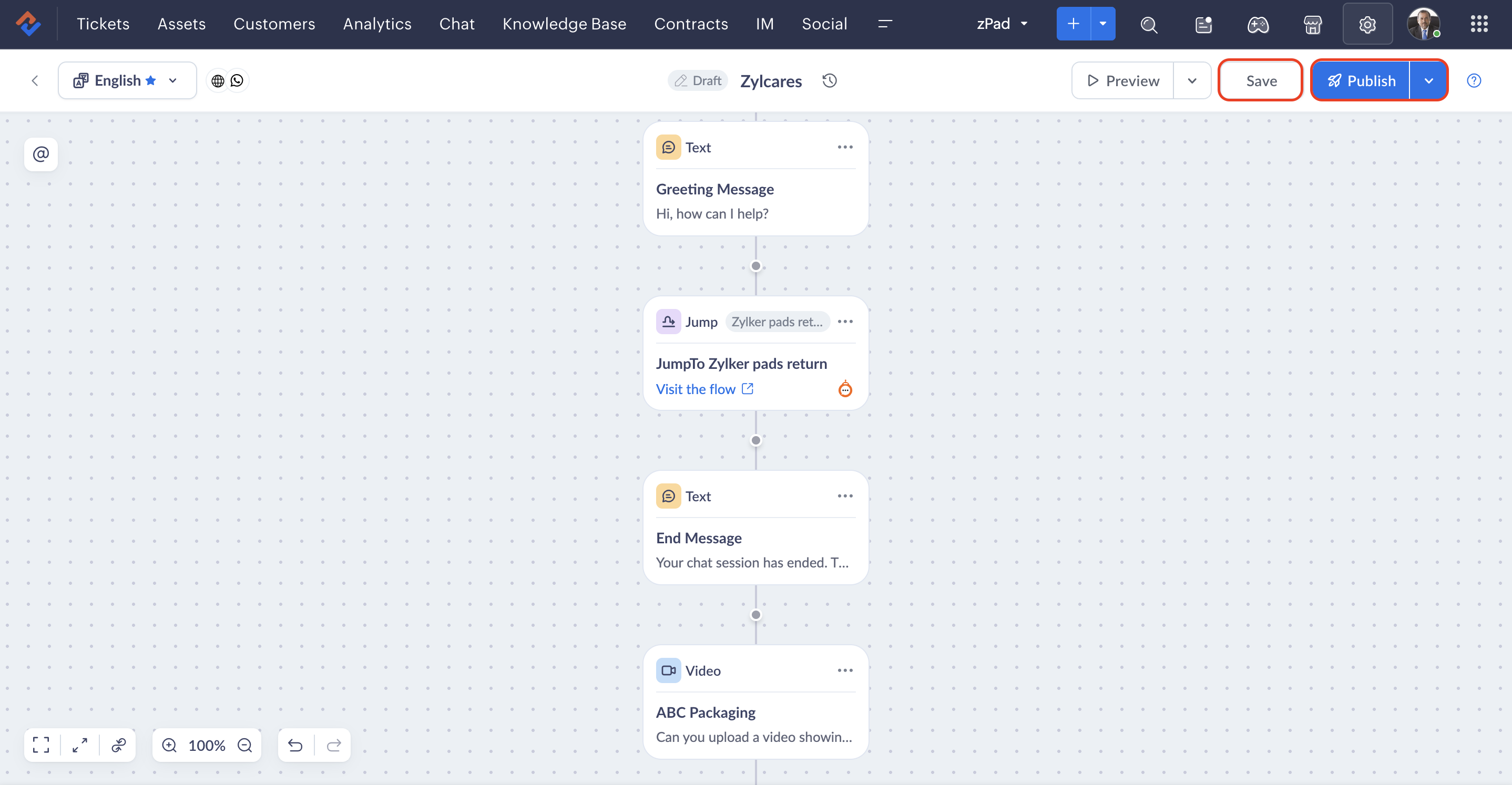 - After making changes, you need to republish the flow for those changes to be reflected in an end user's session.