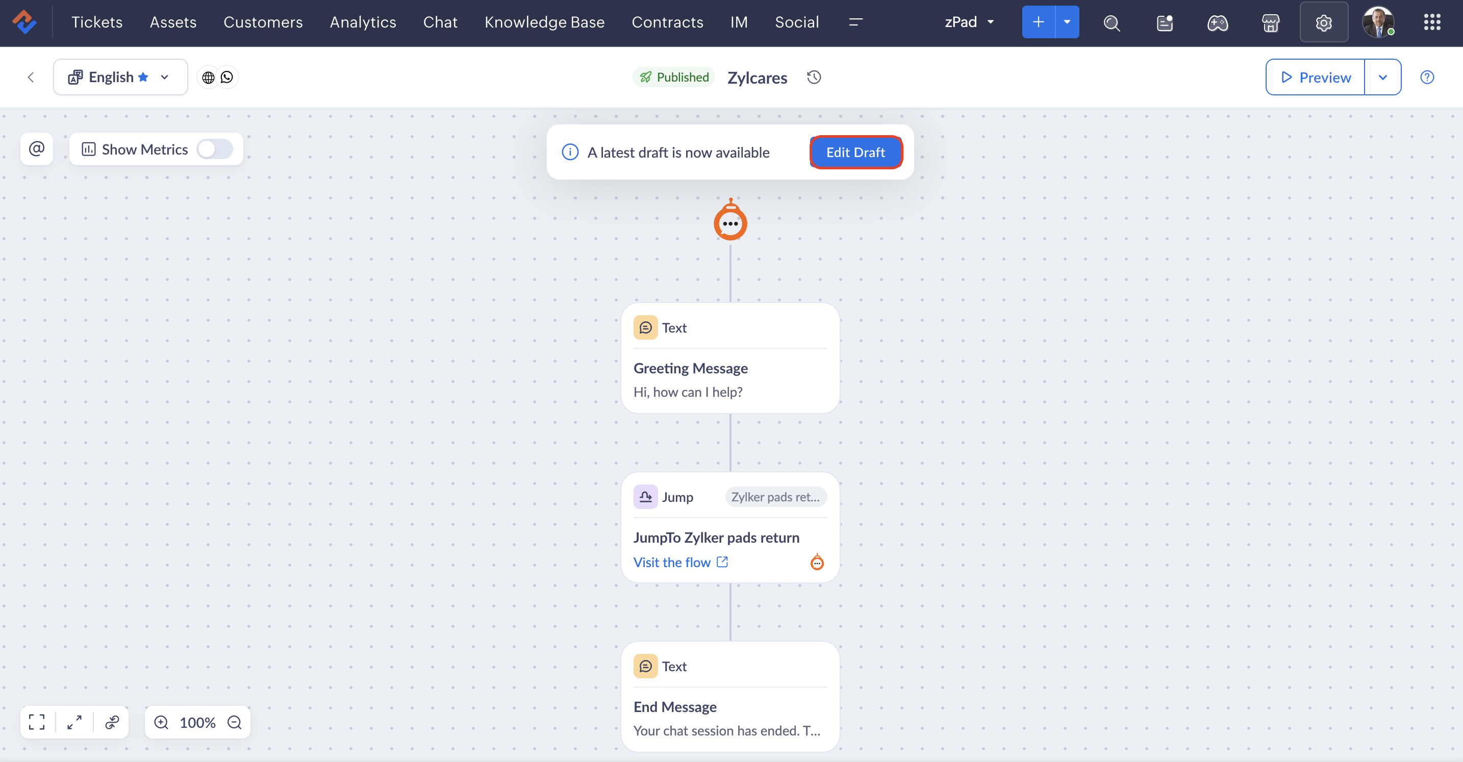 - If you edit a block while an end user is engaged in a live session with the bot, the previous version of the flow will be rendered until they restart the conversation.