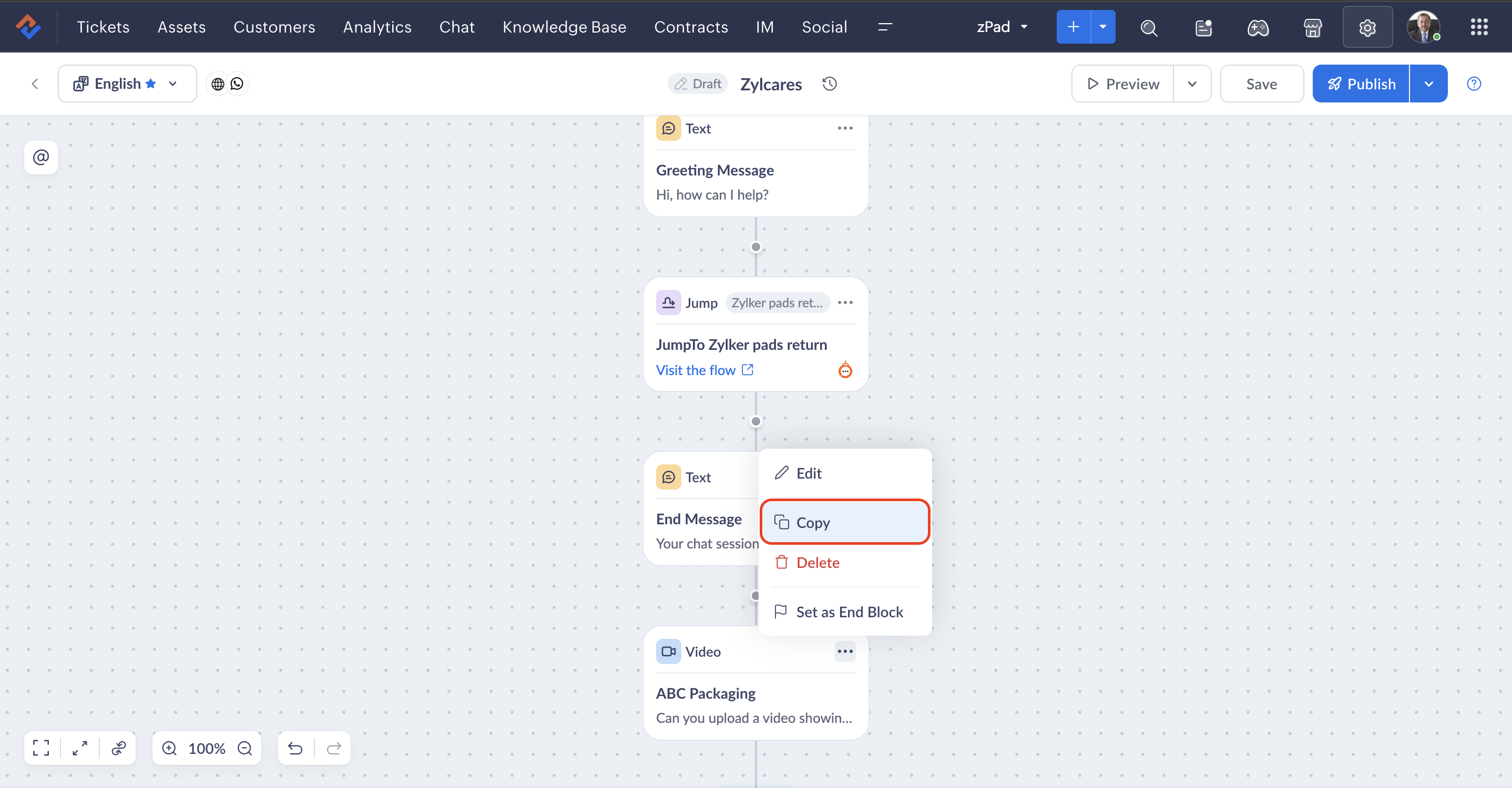 The copy block option can be used when you need to reuse a block that you previously created. You can copy that block and add it to your flow as is, or edit it according to the requirement.
