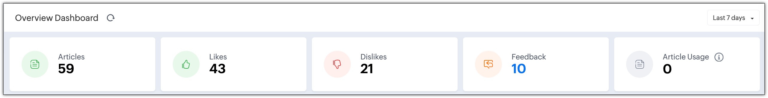 For example, the number of feedback received in the last 7 days, article usage in the last 30 days, and so on.