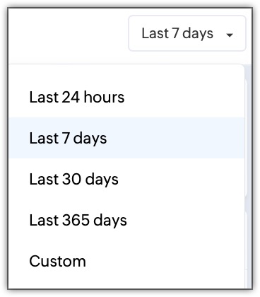 - The data can be filtered for Last 24 hours, Last 7 days, Last 30 days, Last 365 days, and Custom.