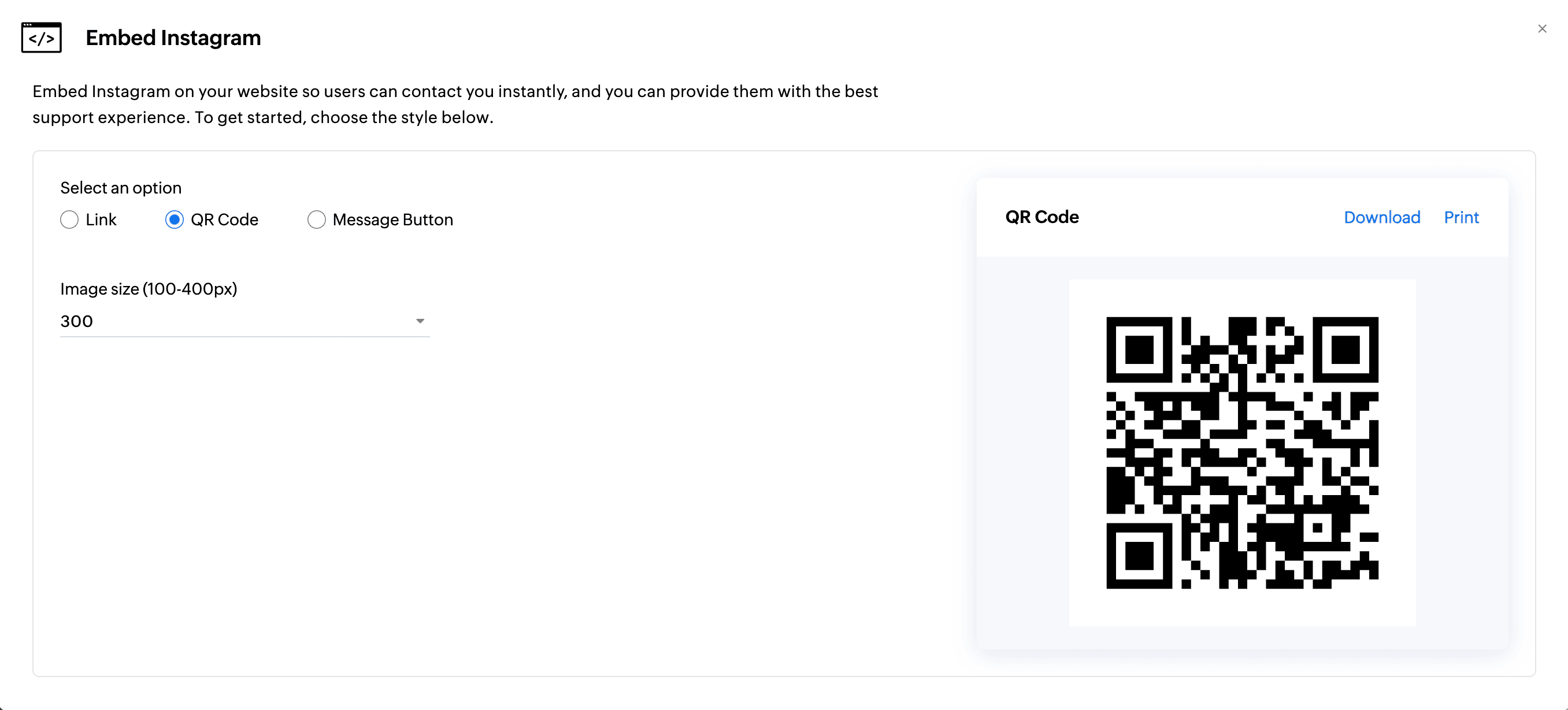 You can also start chatting by downloading the auto-generated QR code. All you have to do is download the code and copy-paste it on your website or display it at the store for customers to quickly scan and reach out through the Instagram app.