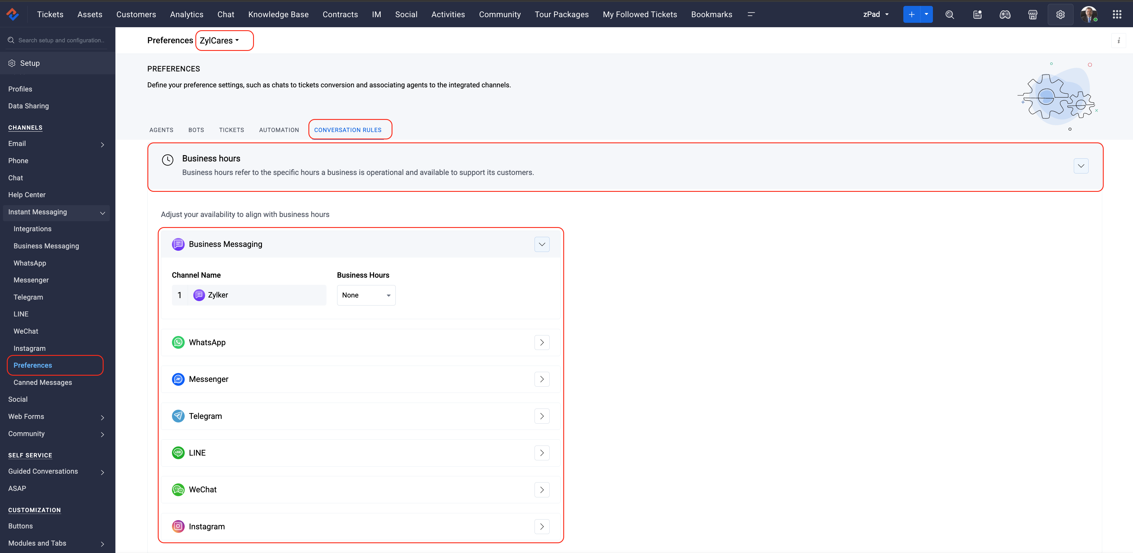 Business Hours | Defined in Desk and mapped to IM channels. Controls routing, bot behavior, and availability. |