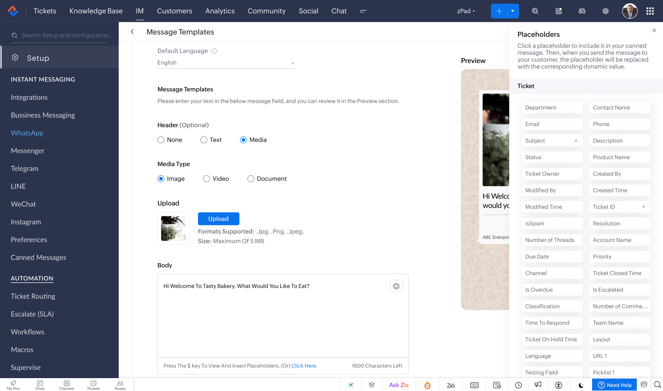 WhatsApp using the IM platform. Ensure all WhatsApp Messages and