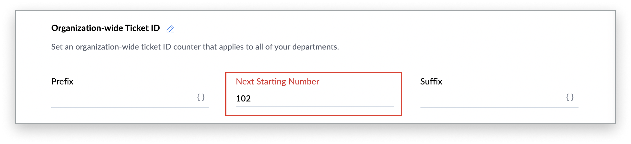) next to Organization-wide Ticket ID. Enter a prefix and/or suffix. This step is optional.