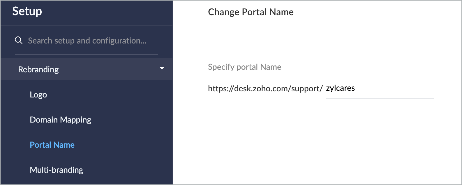 Portal Name | The portal name is the address of your Help Desk account in Zoho Desk. With this functionality, you can customize your portal name according to your preference. |
