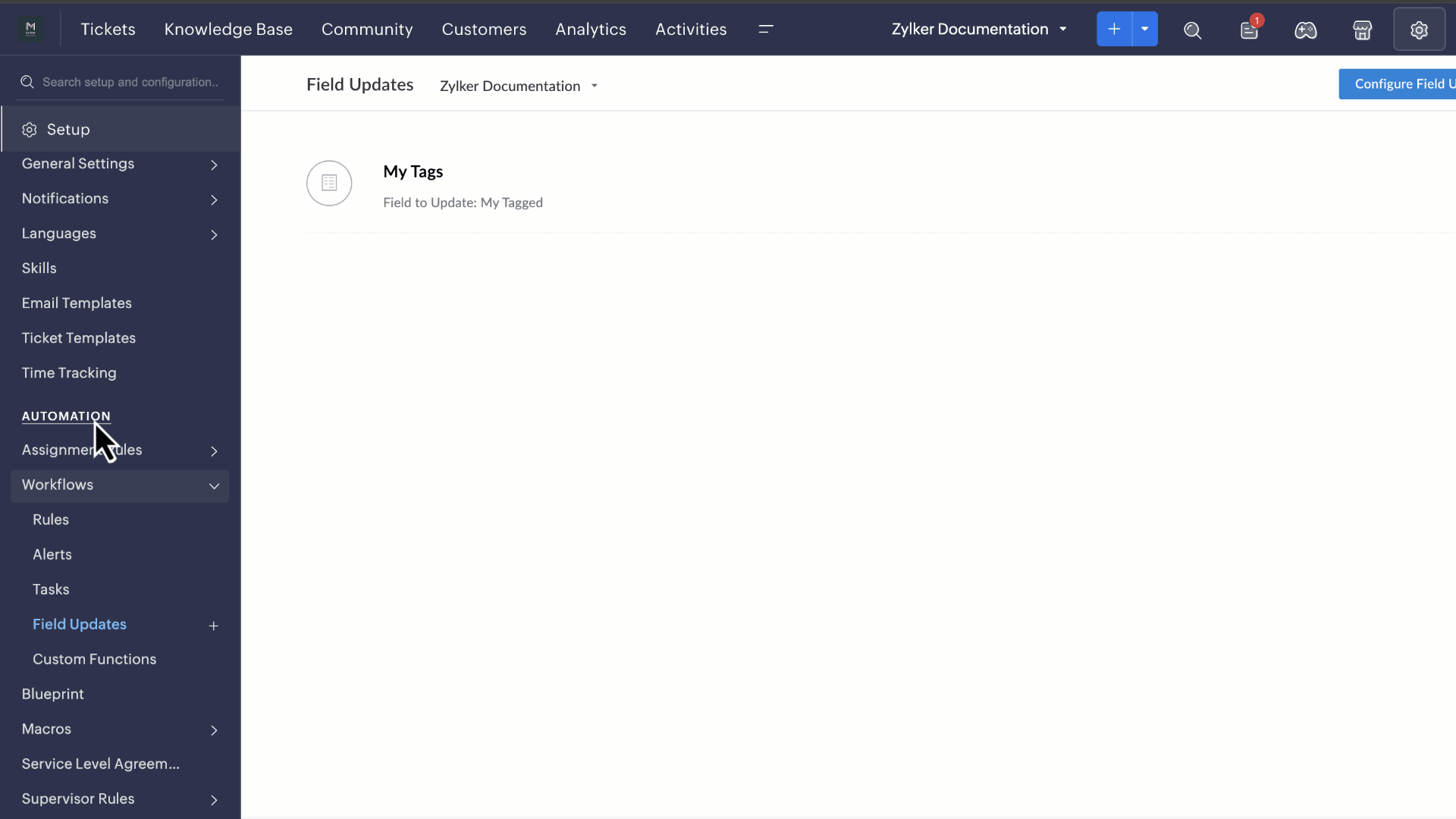 To resolve this issue, the members of the documentation team can make use of the custom function in Desk to create a custom view list that lists out all the tickets where they are tagged. And in order to create a custom view list with all the tickets they are tagged in, the members should create a custom field under Tickets layout.
