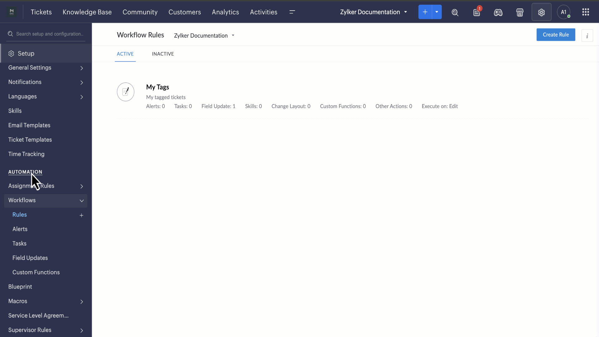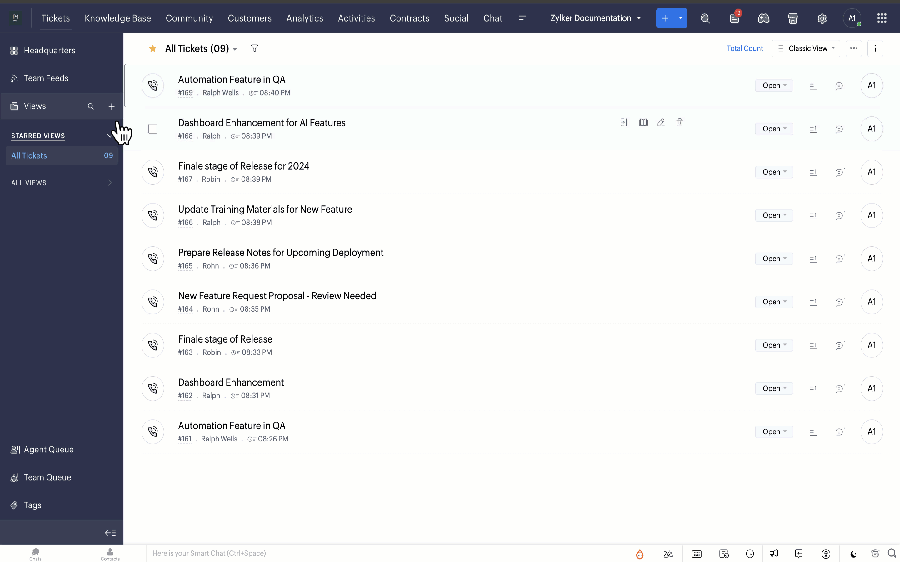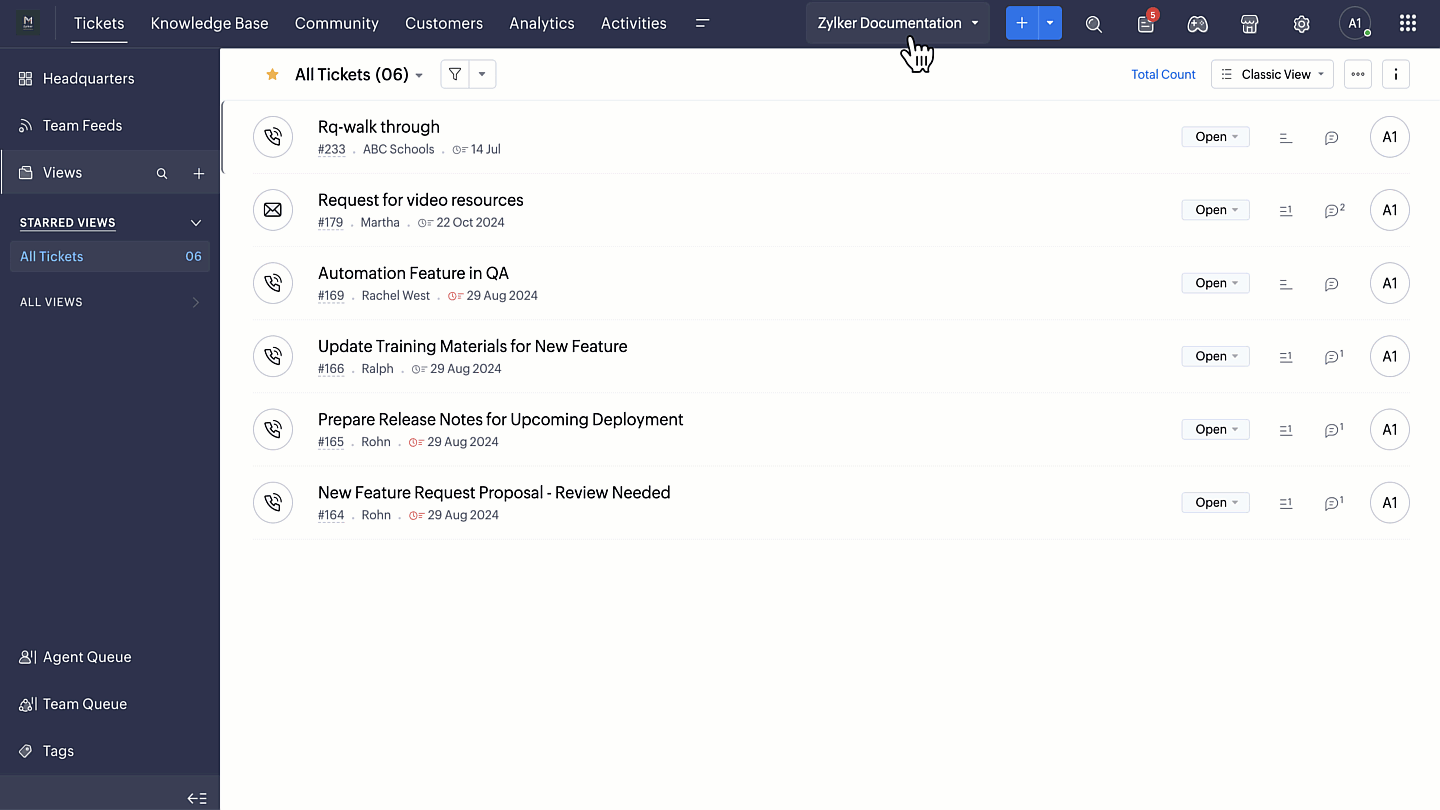 With a custom view list, the documentation team members will be able to view all the tickets where they're tagged in the comments.
