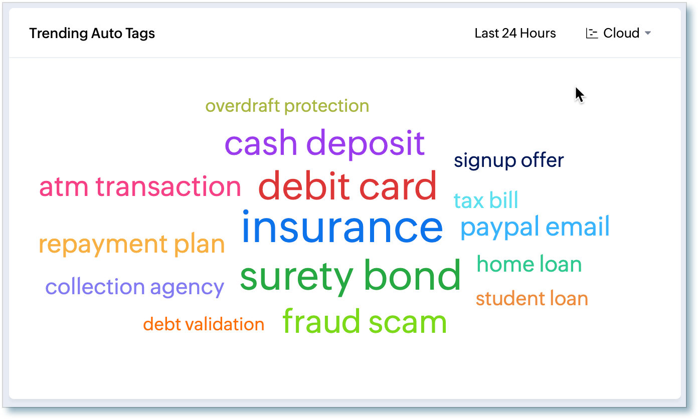 This allows agents to spot trends from the dashboard, identify common issues, and prioritize responses. For example, if an agent spots a spike in tags like "refund" or "return" under trending auto tags, this could indicate service concerns and help teams respond proactively.