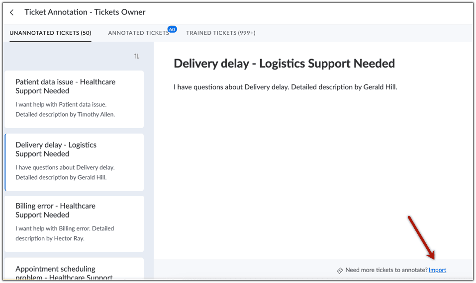 You will be redirected to the Ticket Annotation page, under the Unannotated tab. - In the Unannotated Tickets tab, click Import.