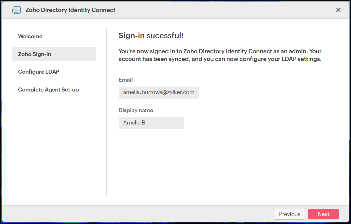 Once the agent is installed, complete the sync setup in Zoho Directory.