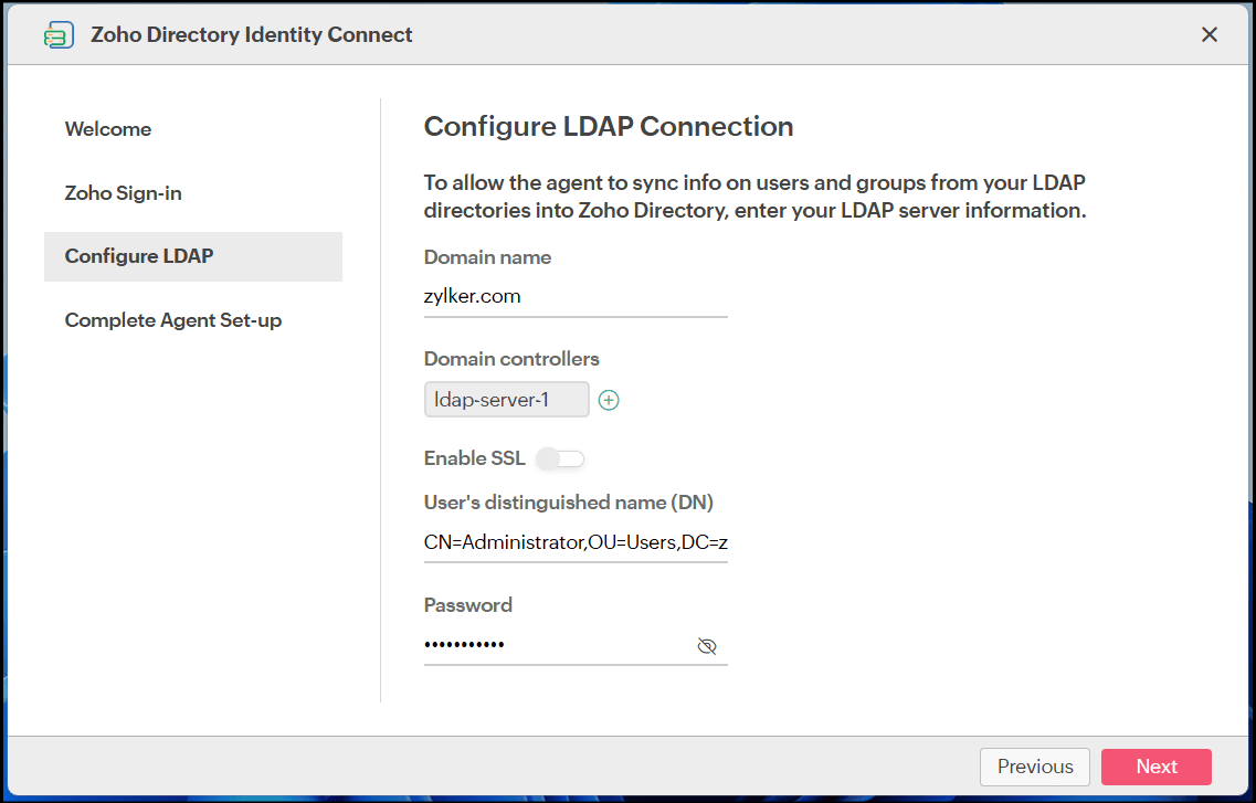 - The main Identity Connect Agent, when coupled with your Active Directory details, allows you to deploy multiple Password Sync Agents (one per Domain Controller) to instantly capture any password change made on these Domain Controllers and securely sync those changes to Zoho Directory.