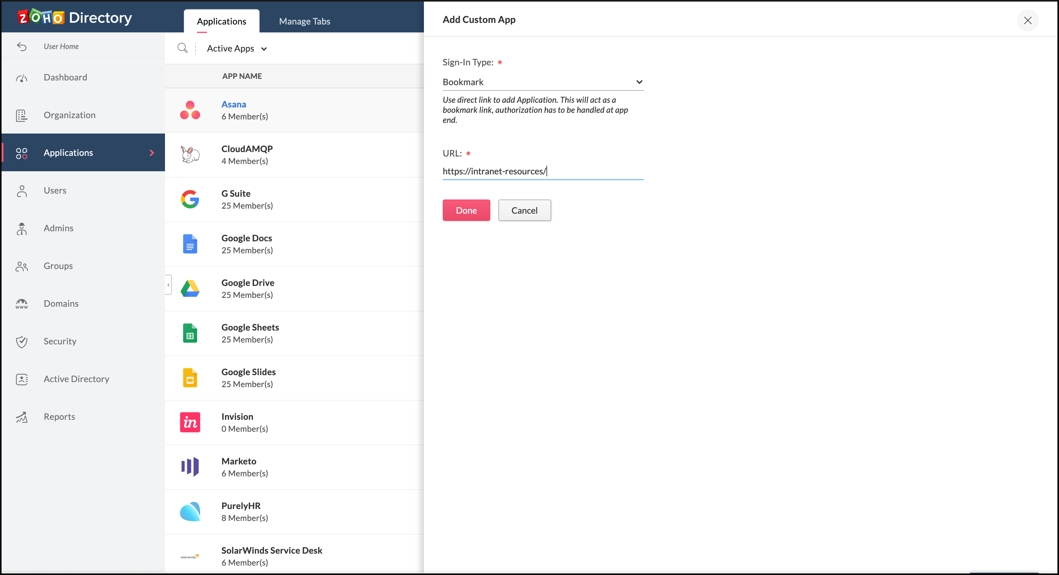 Applications - Add Bookmarked App | Admin Guide - Zoho Directory