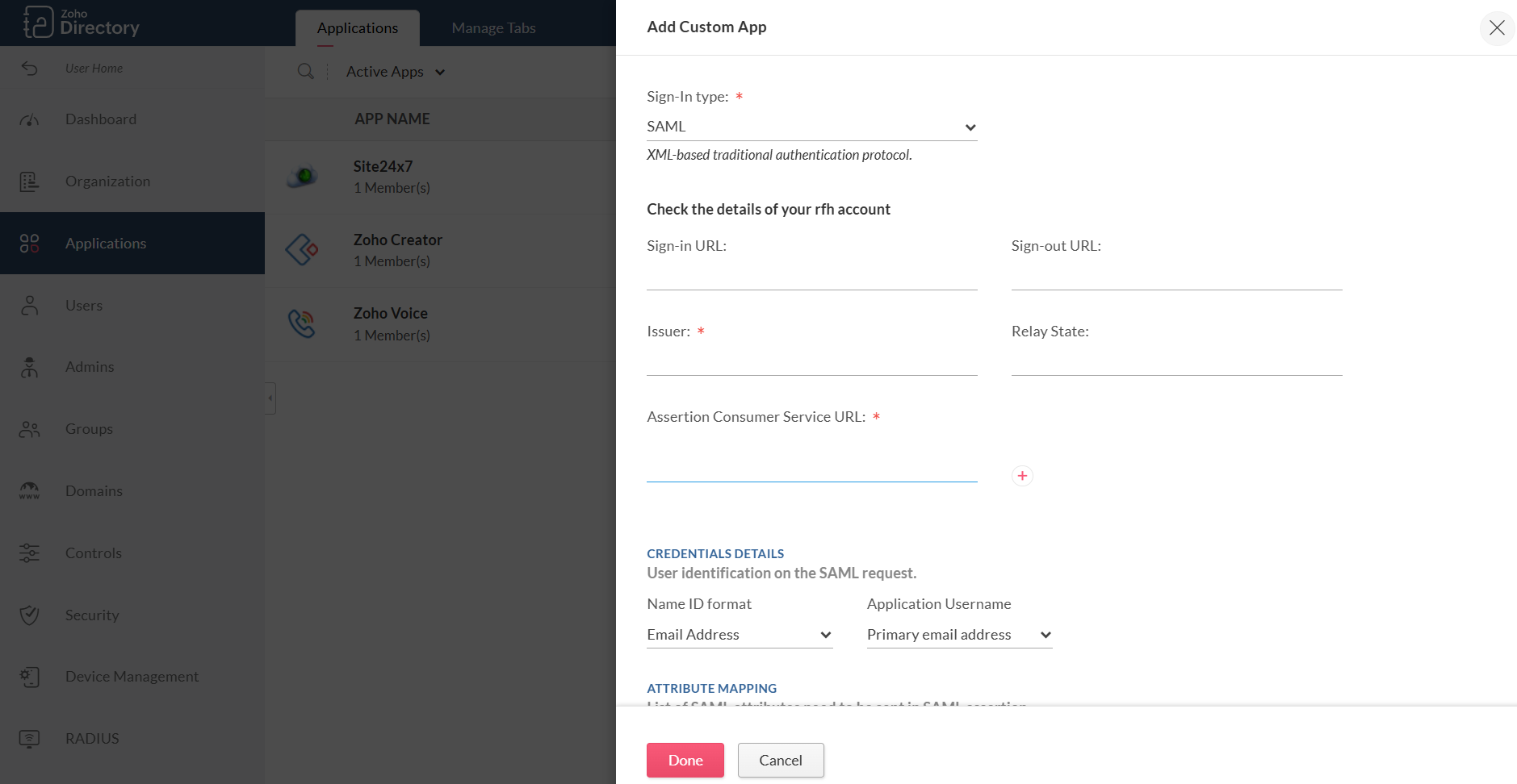 Applications - Add SAML Custom App | Admin Guide - Zoho Directory