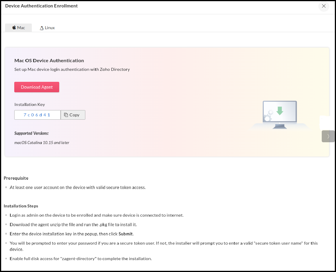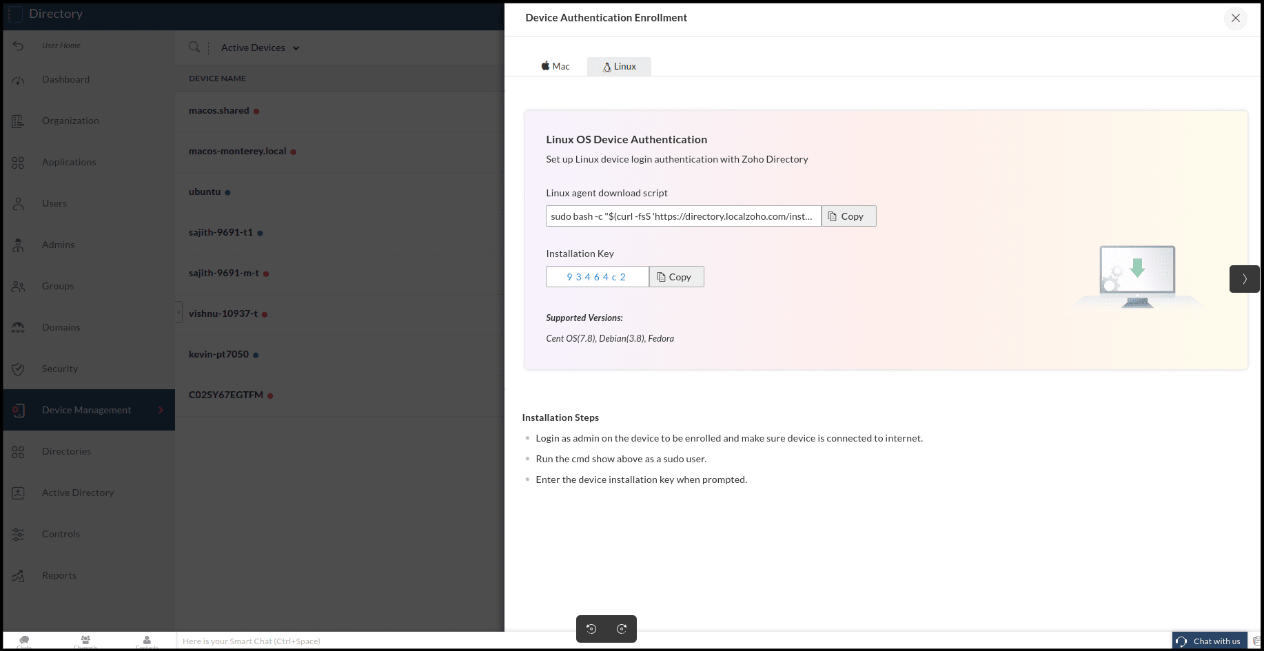 Prerequisites Roles required to perform this action: Organization Owner Organization Admin Device Admin Admin in Endpoint Central account Overview The Zoho Directory agent connects each device to the organization's directory, ensuring that the device ...