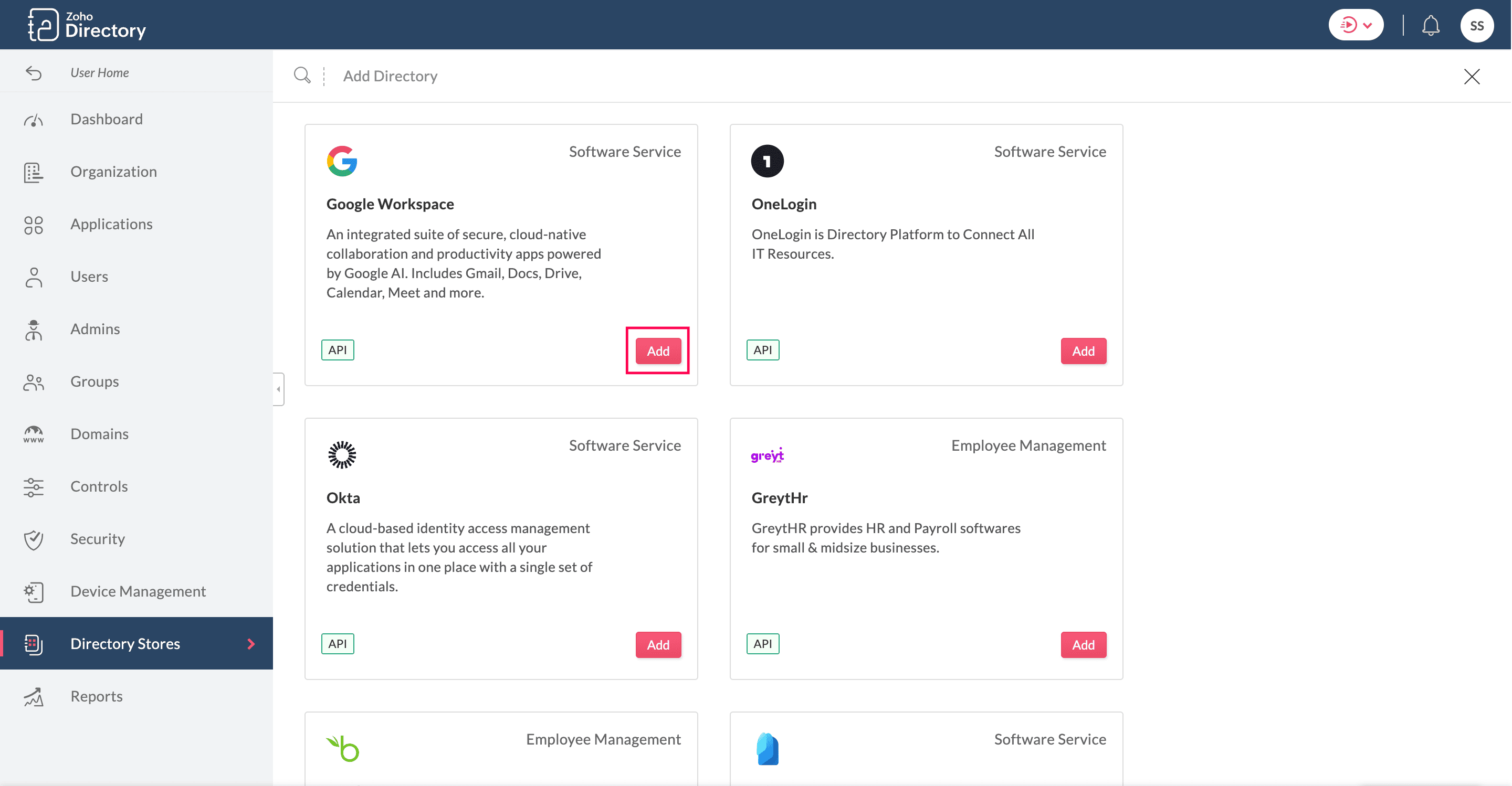 You can now proceed to configure Google Workspace directory store for Zoho Directory.