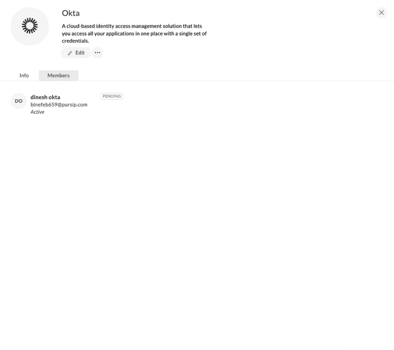 Note: To check if the user you've assigned was synced properly, go back to the Zoho Directory Admin Panel, click Directory Stores in the left menu, click Okta, and check the Members tab.
