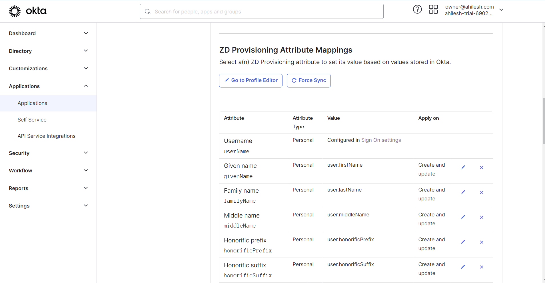 the attribute mappings synced by Okta, navigate to Provisioning tab and scroll down.