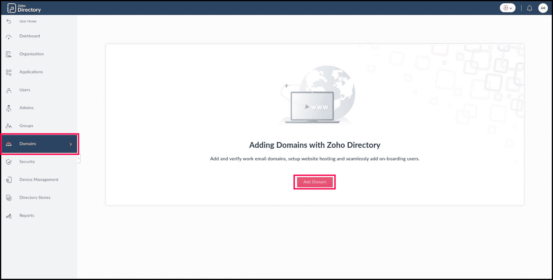 Domains - Add Domain | Admin Guide - Zoho Directory