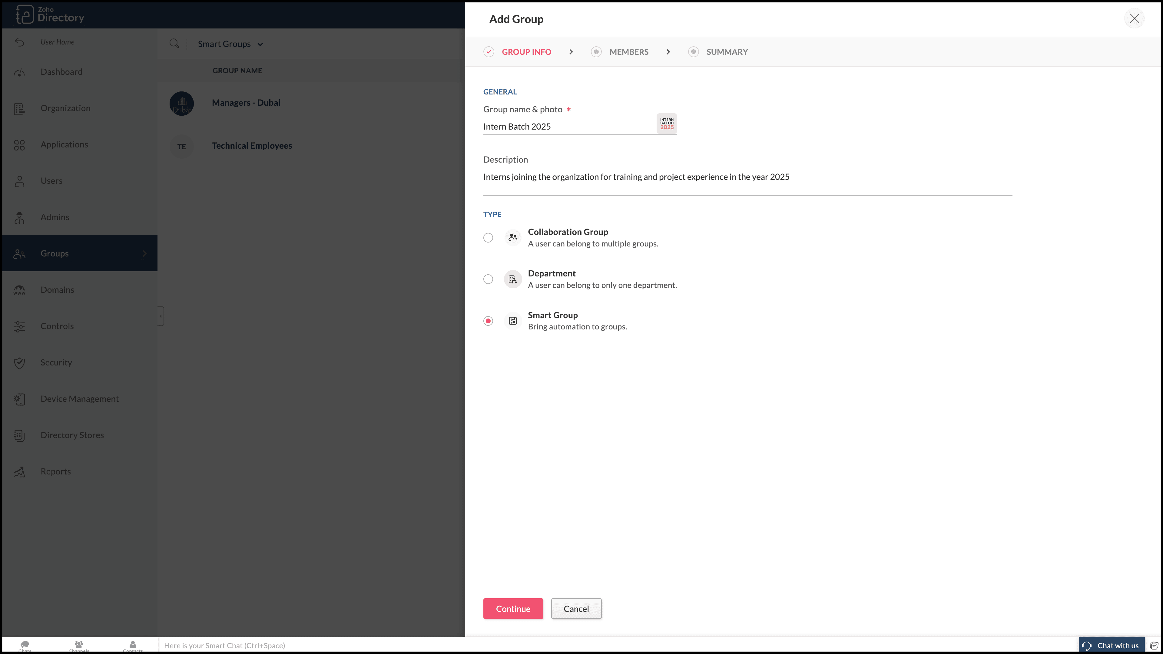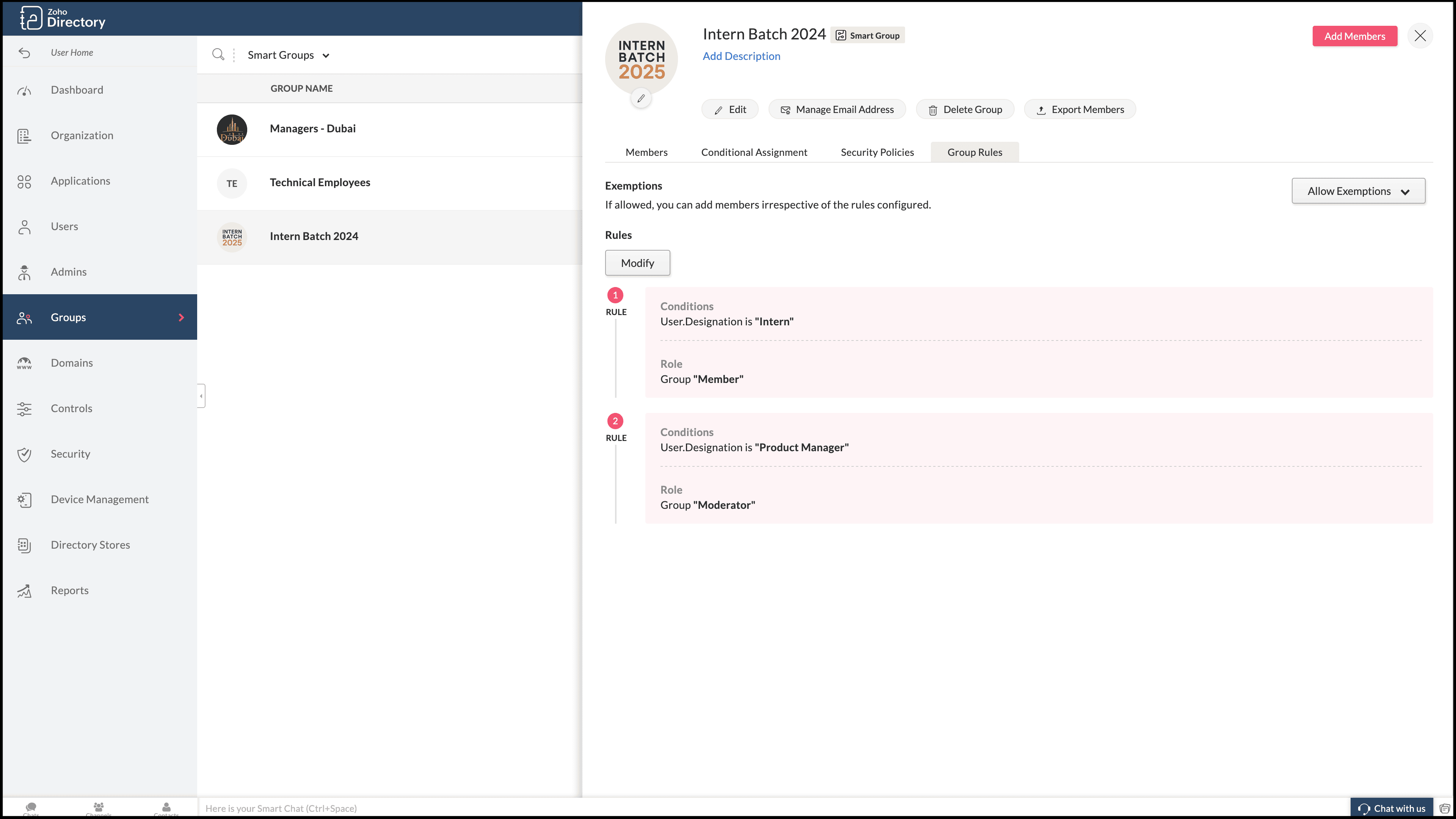 Exporting Members: Smart groups also offer a useful feature by which you're allowed to export manually added users in various formats, including CSV, XLS, XLSX, and VCF.Learn how to use the best tools for sales force automation and better customer engagement from Zoho's implementation specialists.