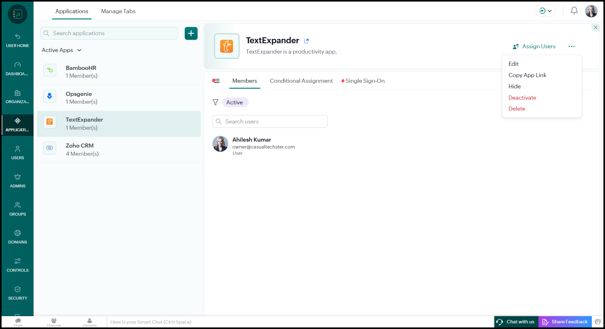 Disable SSO before deactivating third-party applications in Zoho Directory.