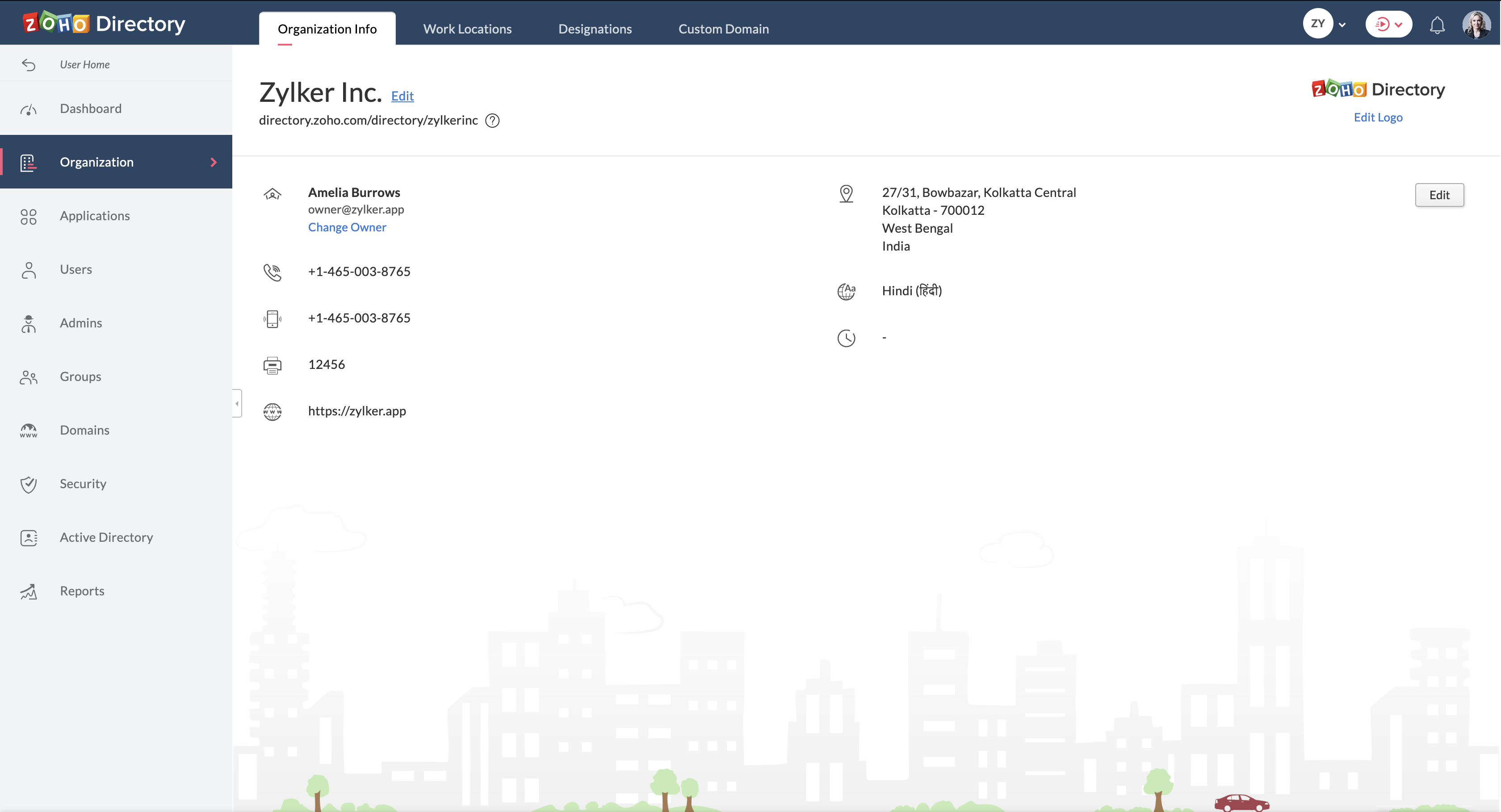 Managing Organization - Edit Information | Admin Guide - Zoho Directory