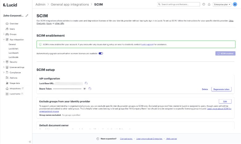 5. Copy the Lucid Base URL and Bearer Token, as it is required for configuring provisioning in Zoho Directory.