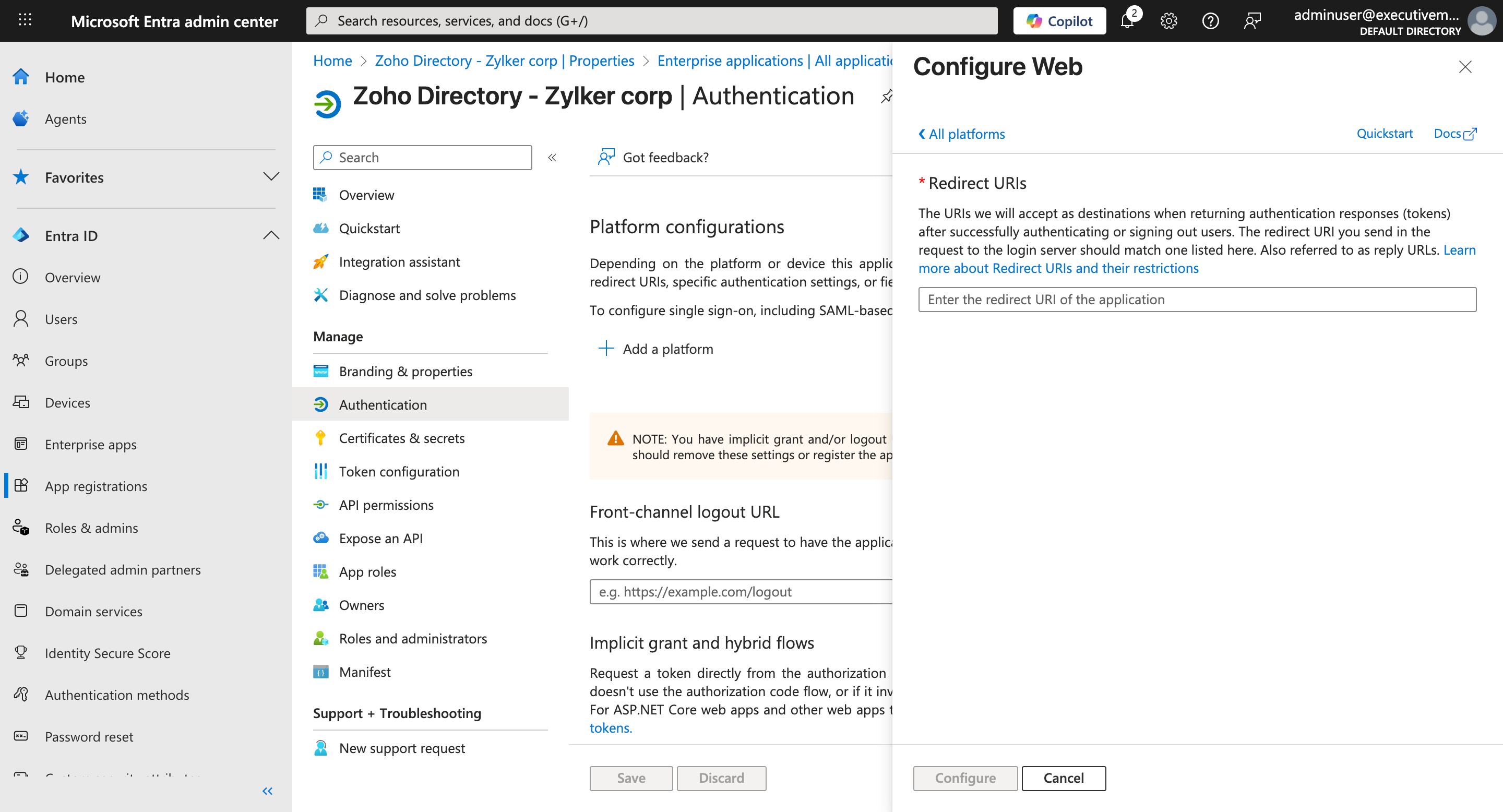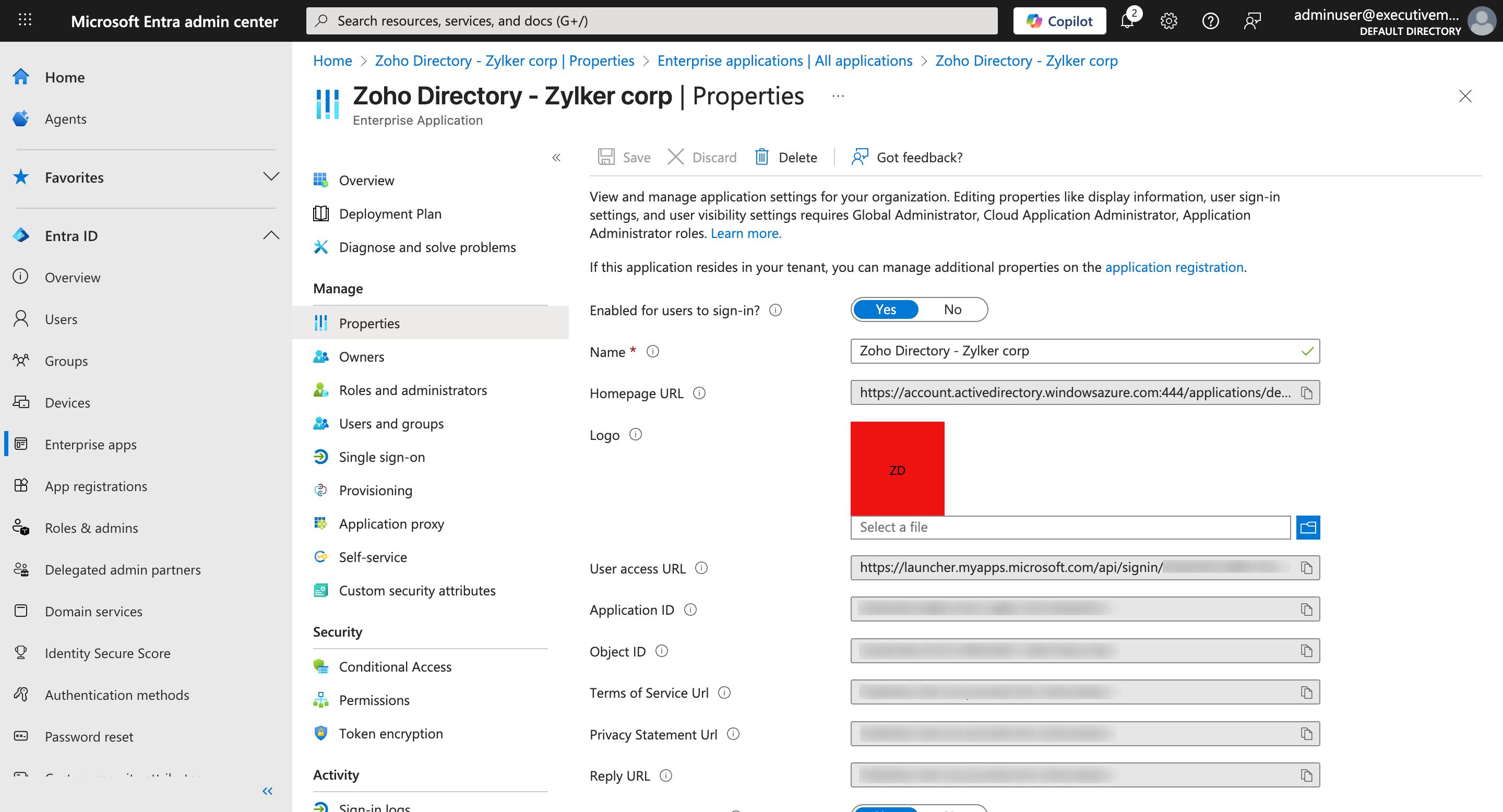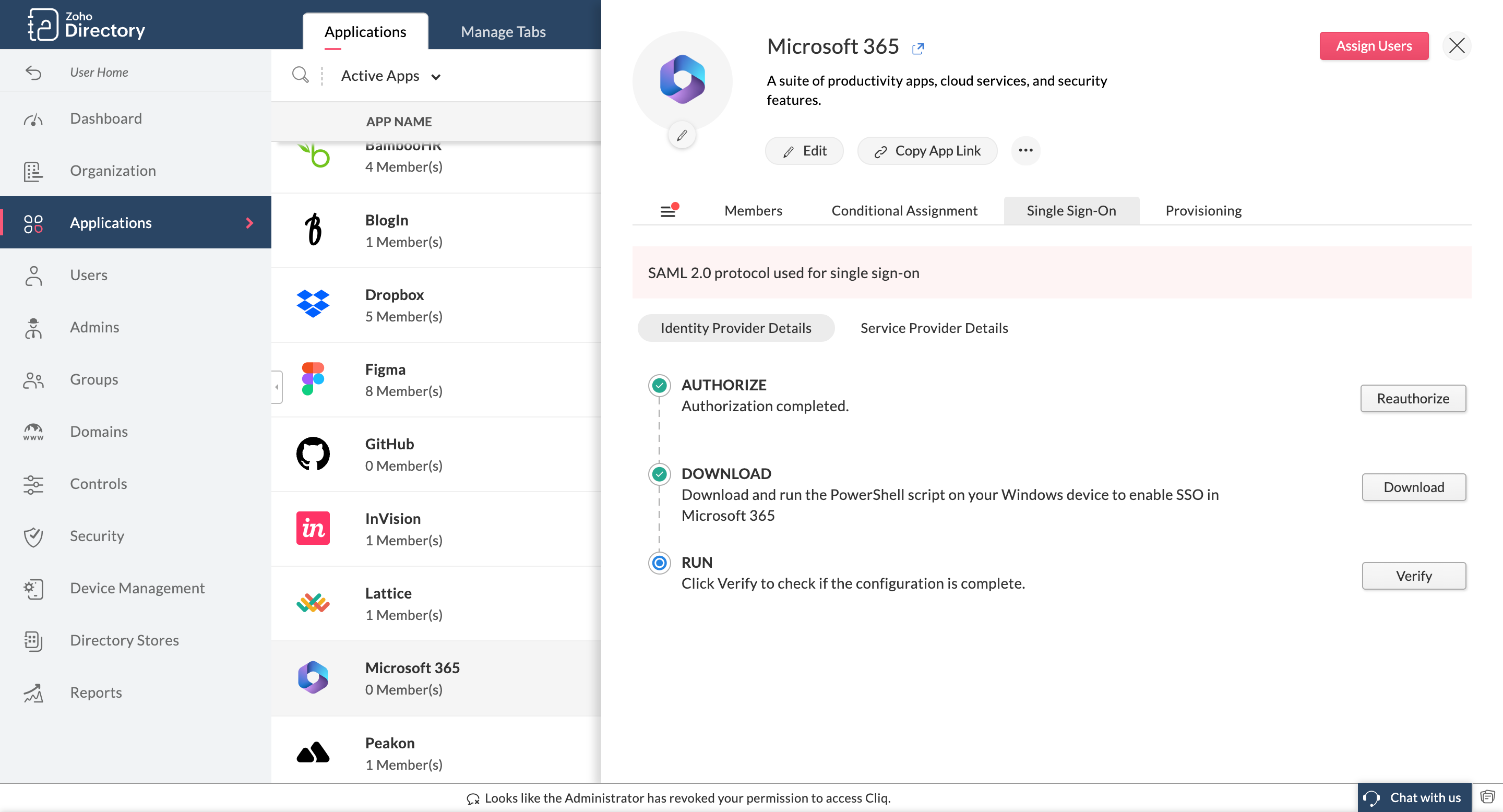 - Return to the Zoho Directory Admin Panel.