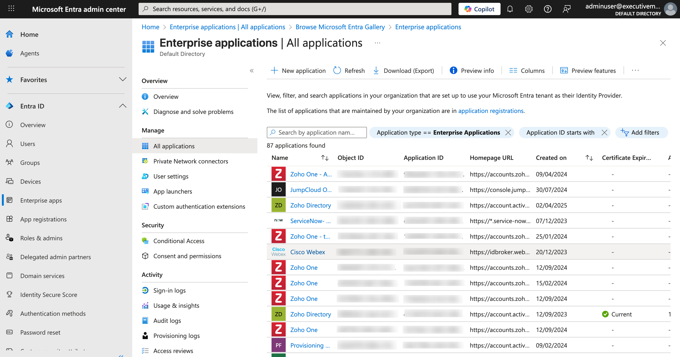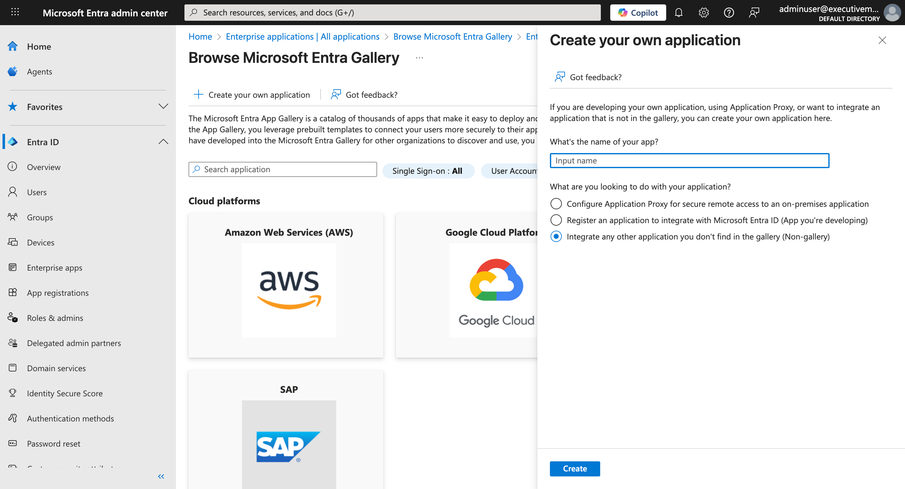 - Click Enterprise Apps, then click New application.