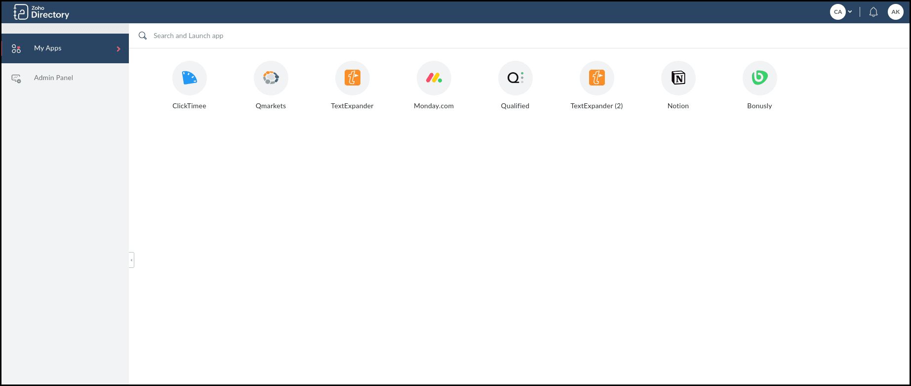 Sign in to Zoho Directory , then click Admin Panel in the left menu.