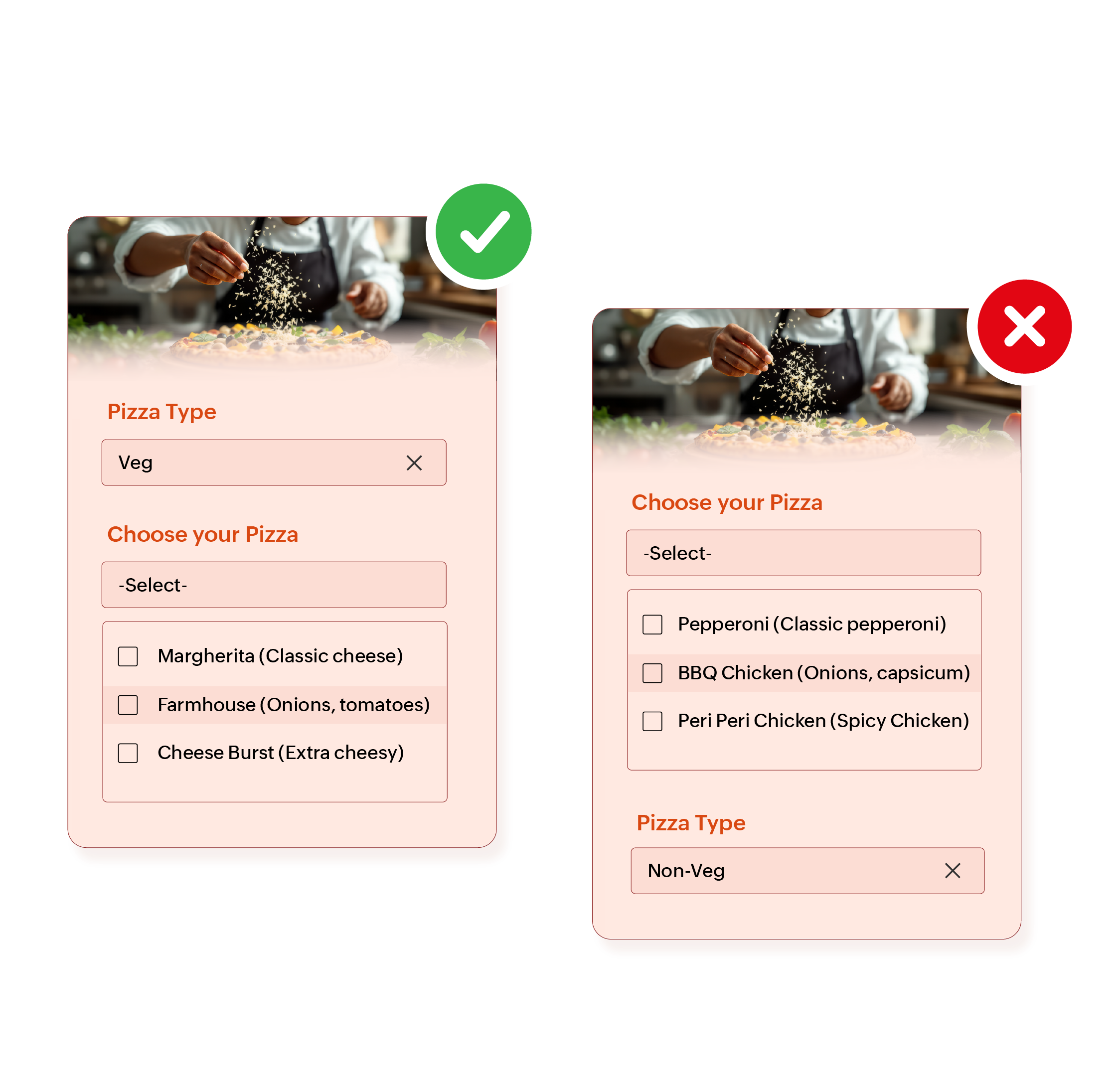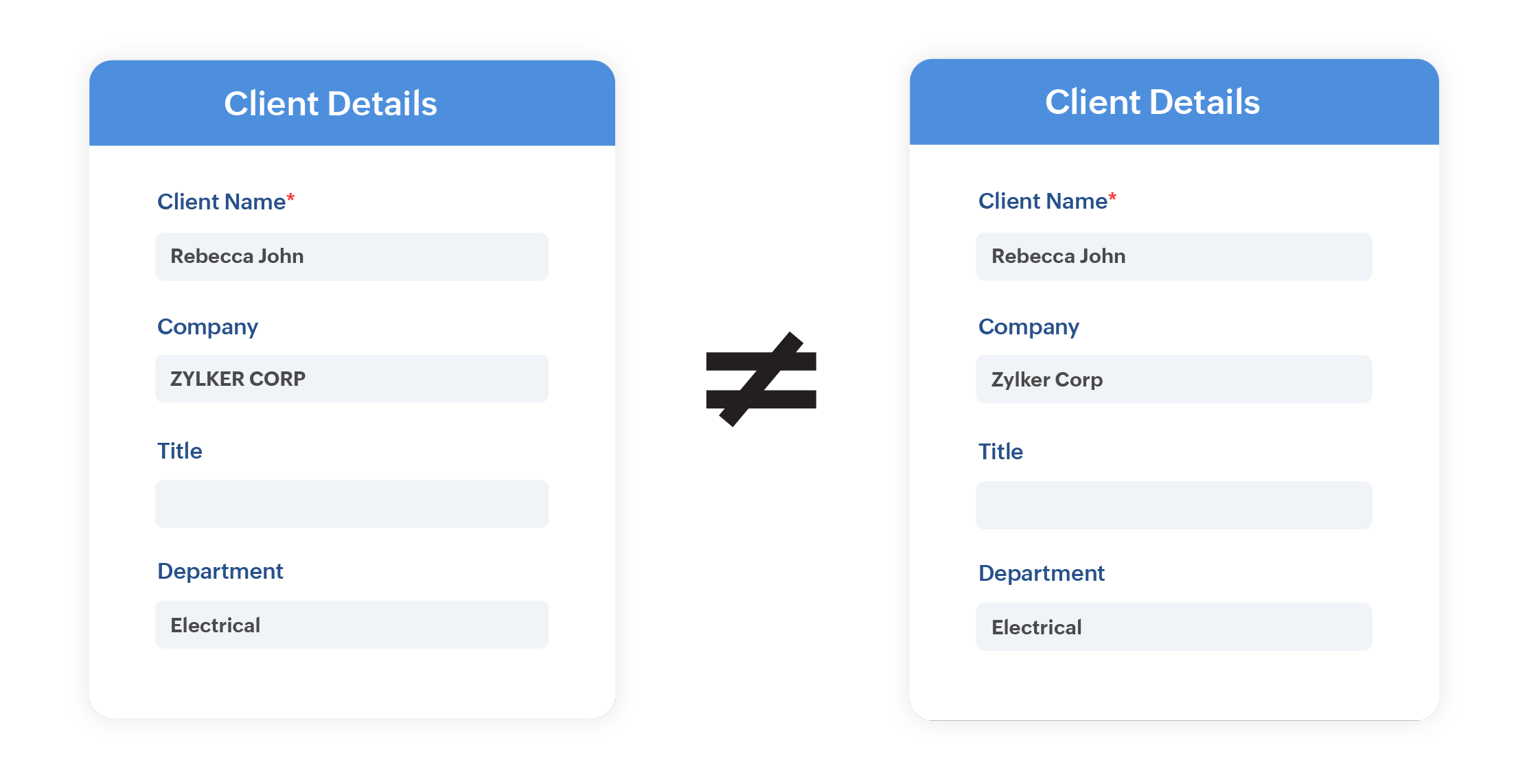 Conditional Rules in Zoho Forms are case sensitive which means the uppercase and lowercase characters are treated as distinct in a condition. In a nutshell, the conditions trigger actions only when the case of the text in the defined condition matches the case of the respondent input.