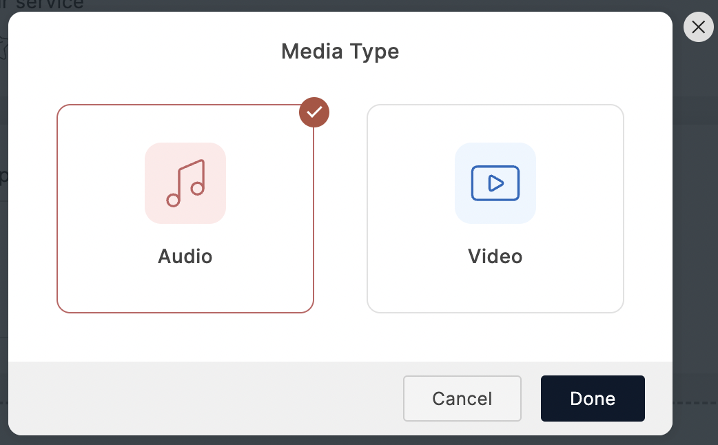 4. You can change the Type of Embed from Audio to Video or vice-versa at any point. Changing the embed type removes the URL associated with the previous selection.