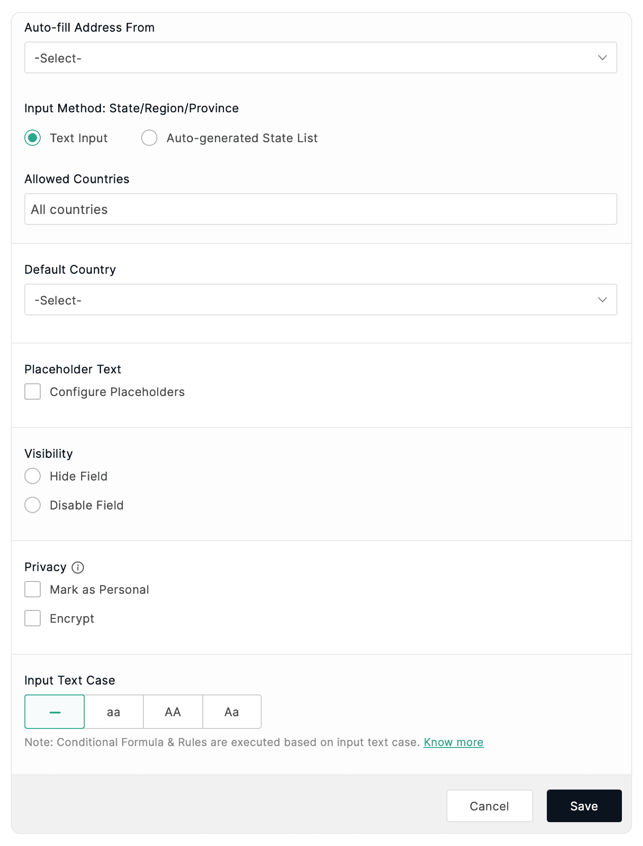 In the Properties of the field, several customizable features enhance its functionality and user experience: