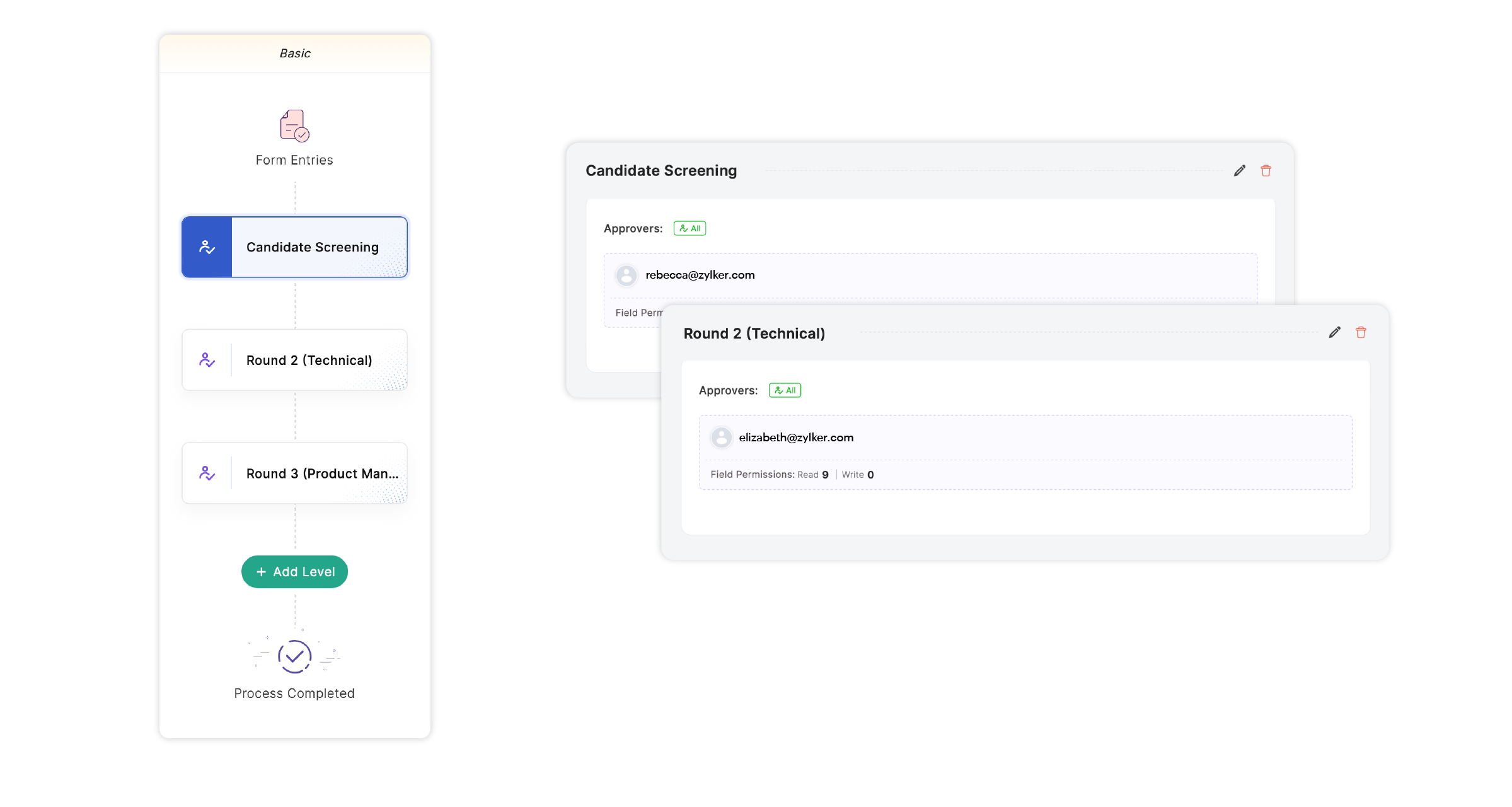 The Basic approval process is designed for straightforward, sequential approvals with multiple levels. If you need a linear approval flow without complex conditions, this option is ideal. Form entries are processed step-by-step through a chain of approvers. If the first approver accepts the submission, it moves on to the next approver. You can define several stages of approvals. For example, a leave request might go through the employee's manager first, then HR, and finally the department head. This type of workflow doesn’t include conditions. Every submission follows the same path through all the approval stages.