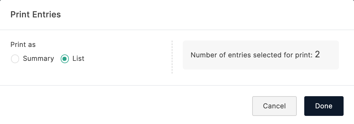 2. In the Record Summary popup of the selected entry, click the Print icon.