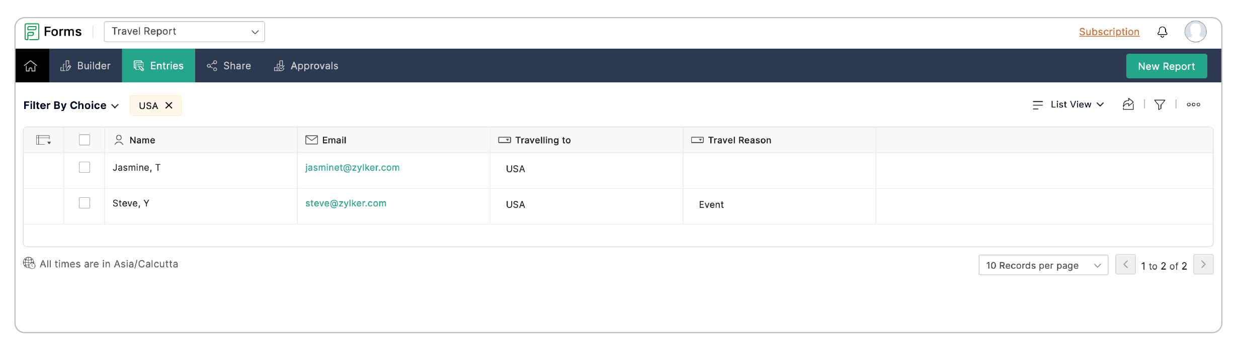 Filter by Choice option on the report entries tab later to view data based on the selected choices.
