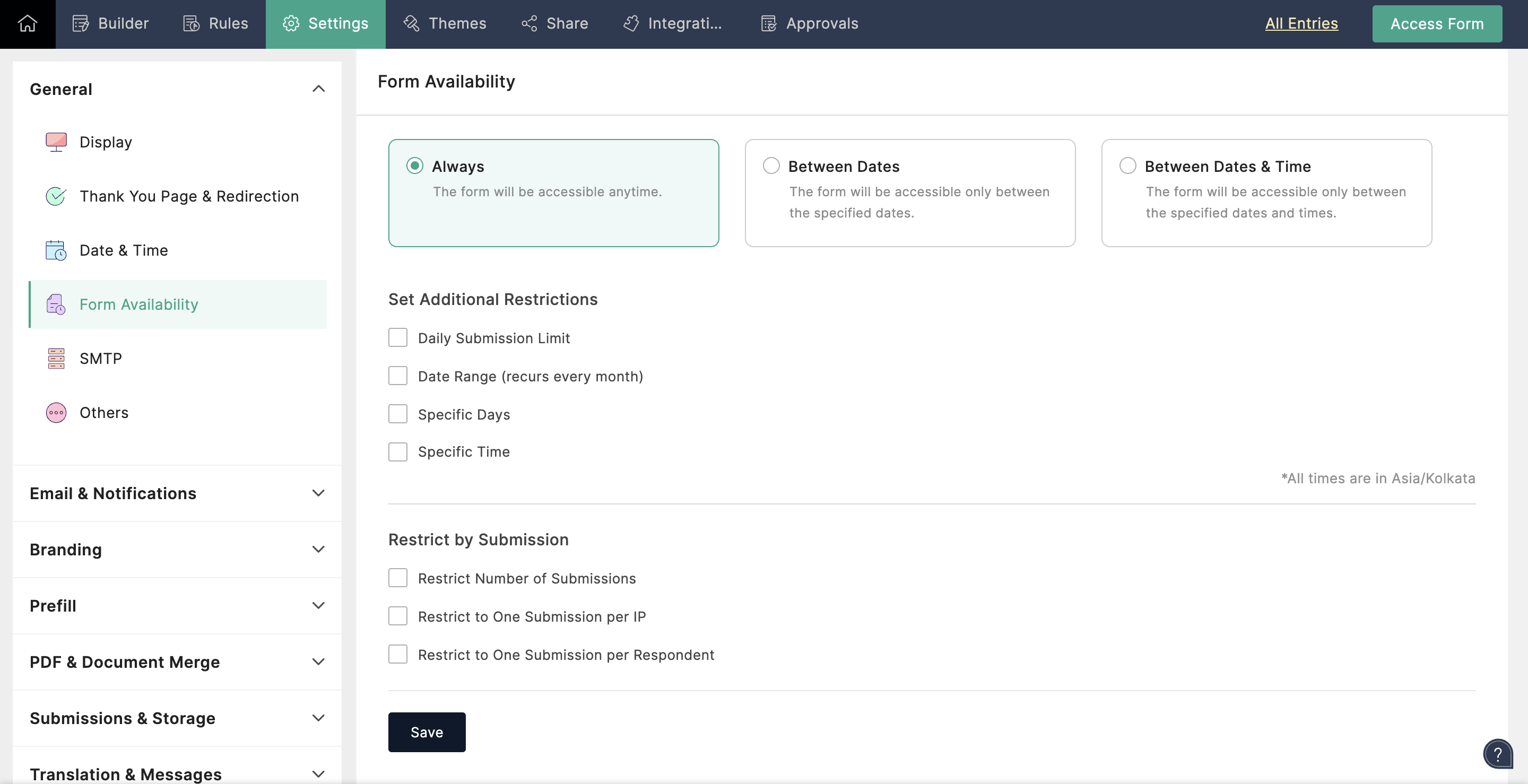 To set additional restrictions on your form's accessibility, choose from the following options: