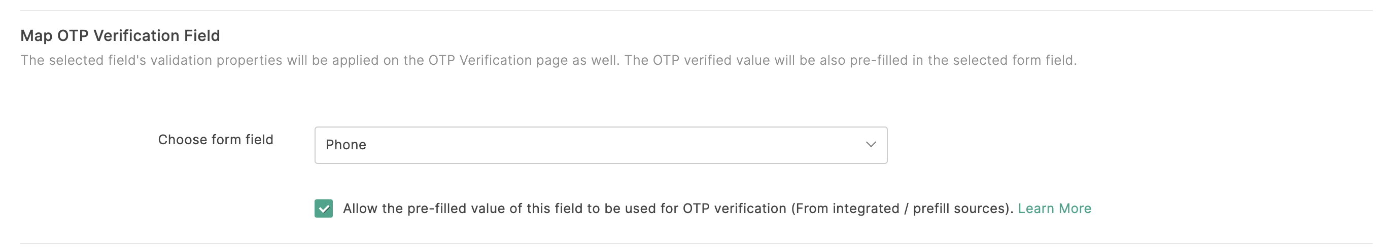 If the phone field is pre-filled through an integrated service or Field Alias, it cannot be modified on the OTP page. The OTP will be sent exclusively to this pre-filled value.