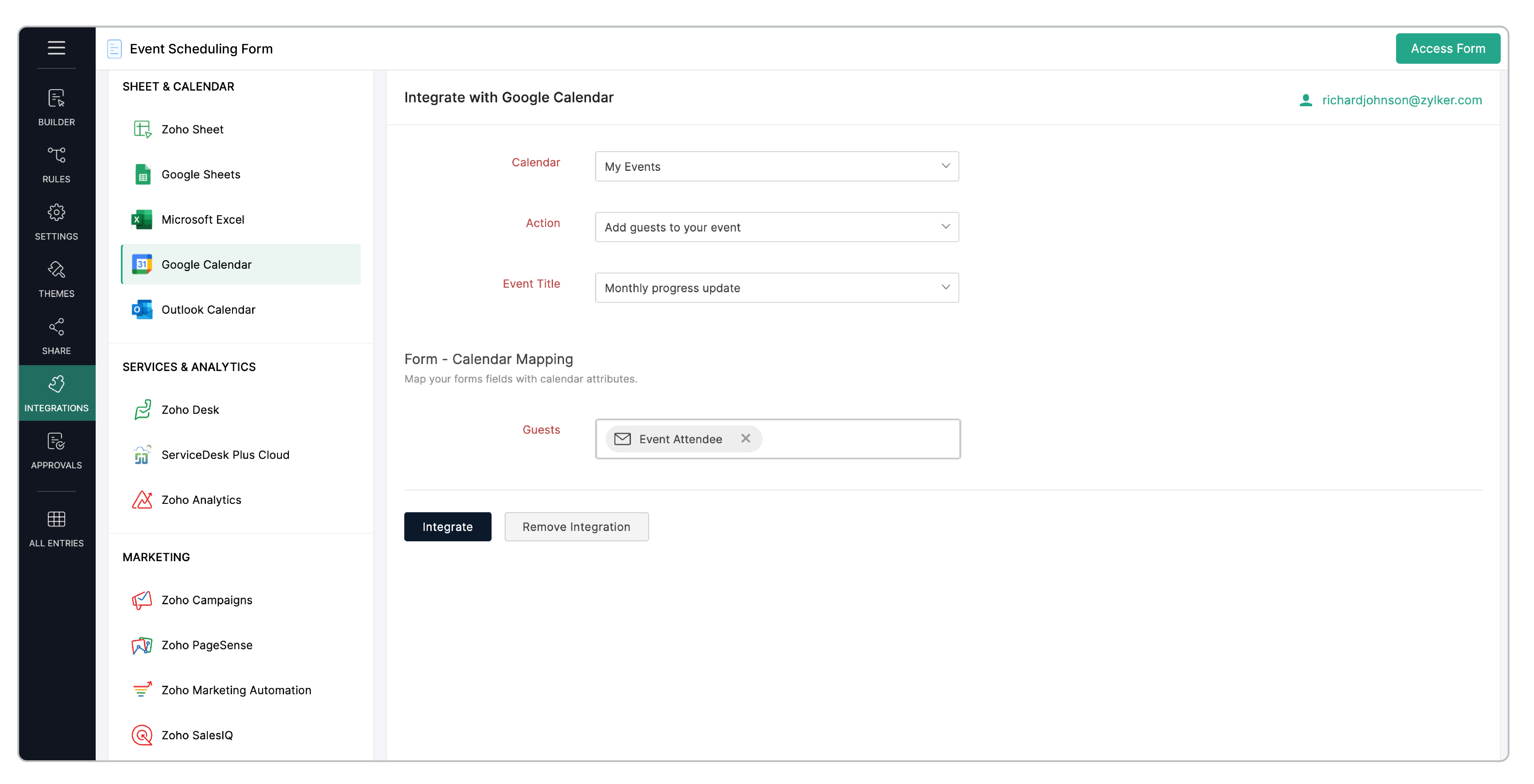 To integrate your form with Google Calendar,