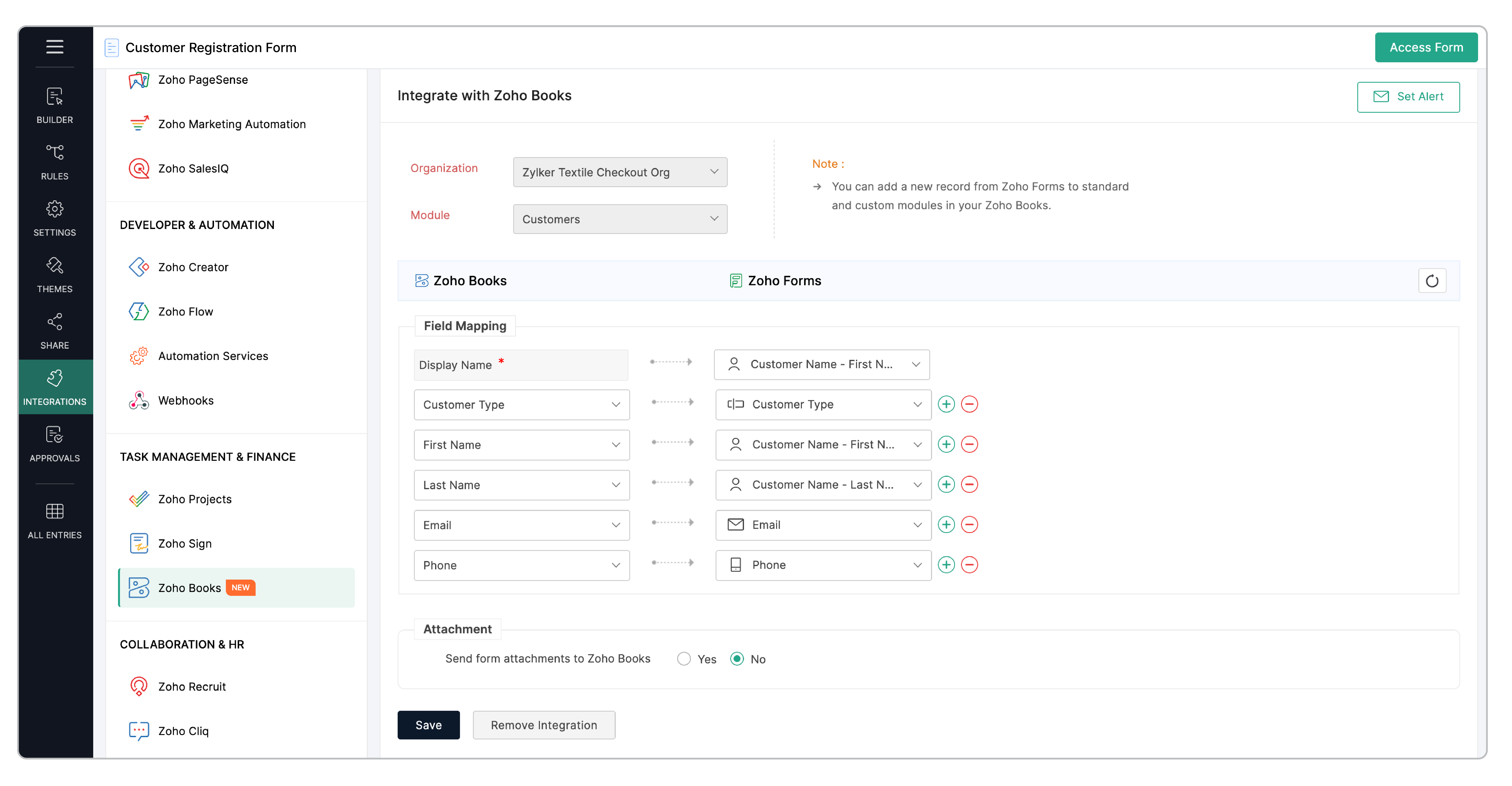 | S. No | Zoho Books Field | Supported Zoho Forms Fields |