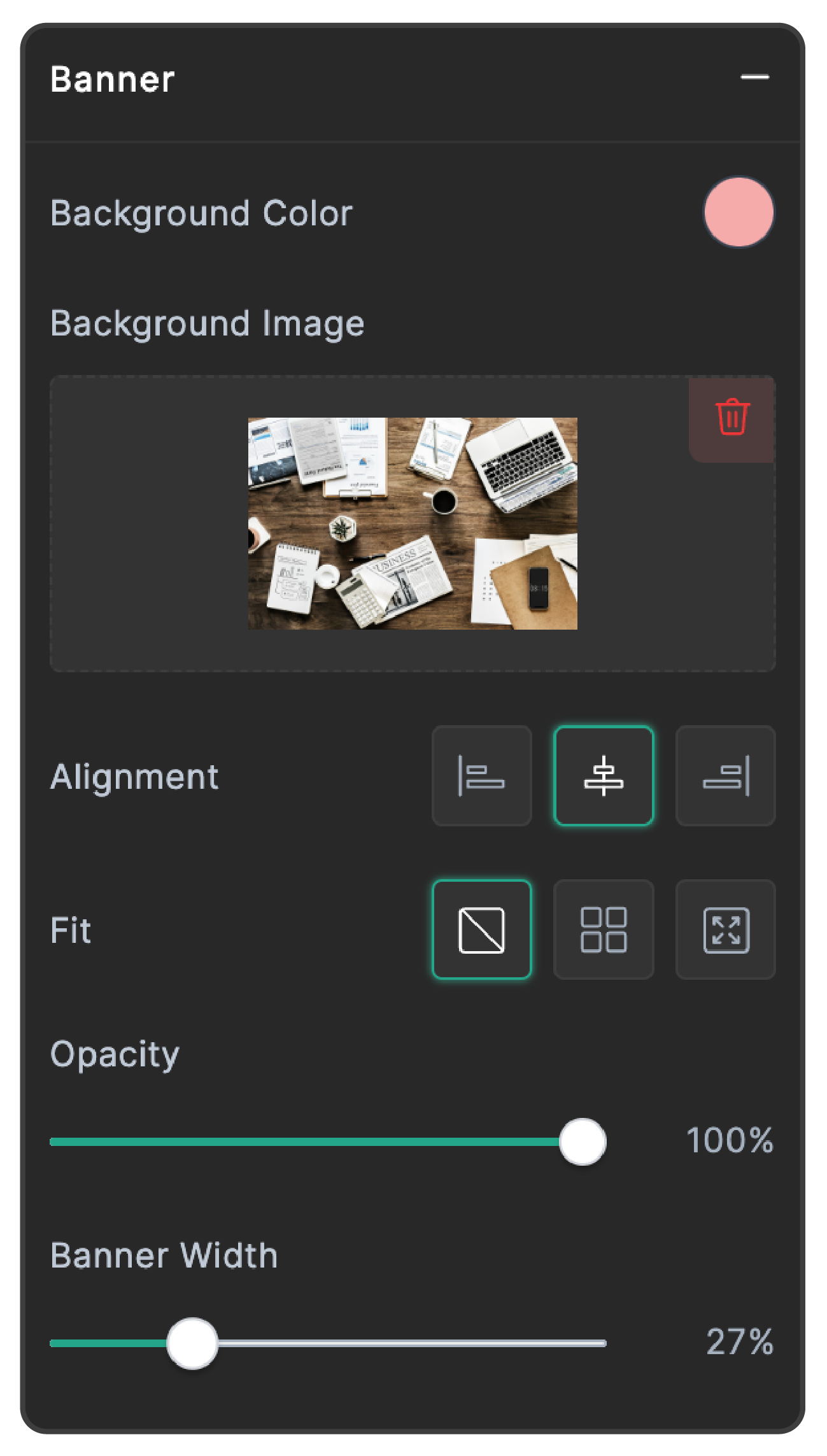 - Alignment: Choose the horizontal alignment of the banner image — left, center, or right.