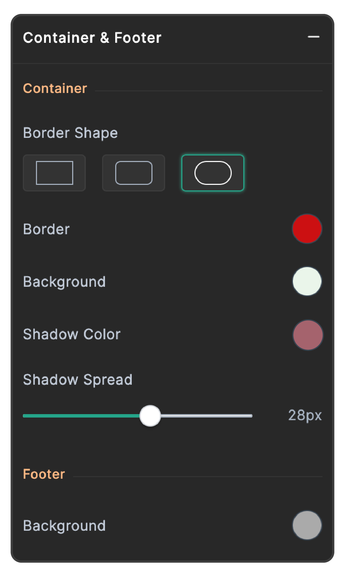 - Shadow Spread: Adjust how far the container’s shadow spreads using the slider.